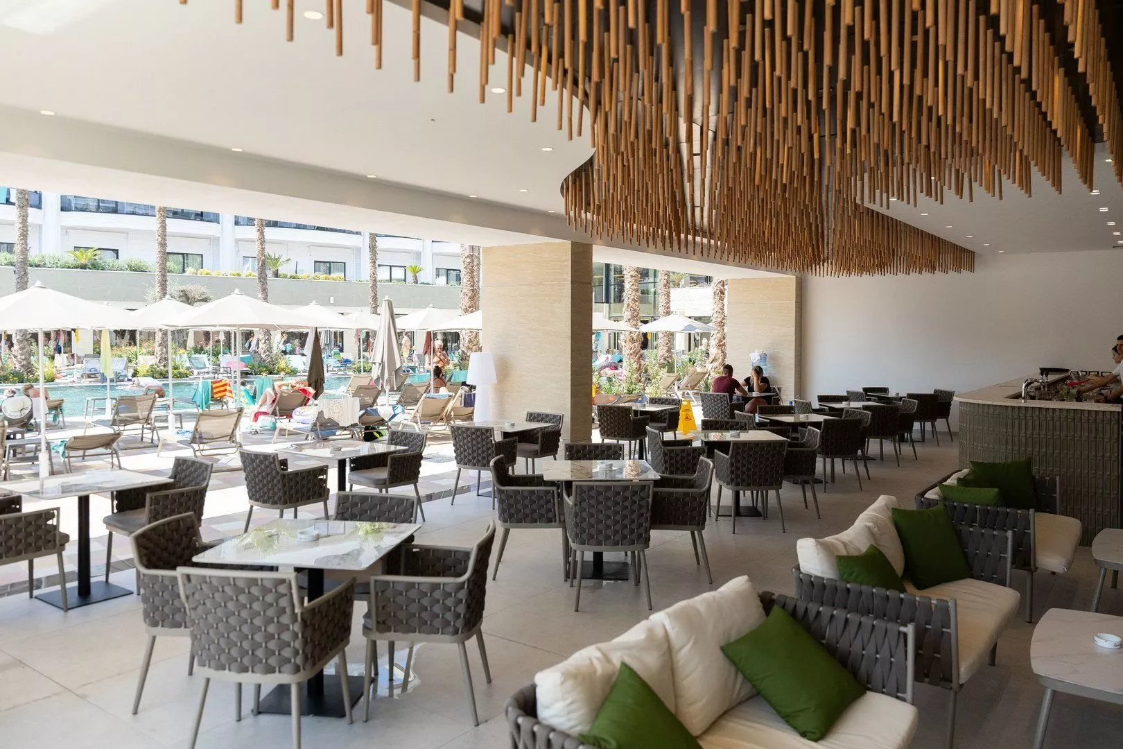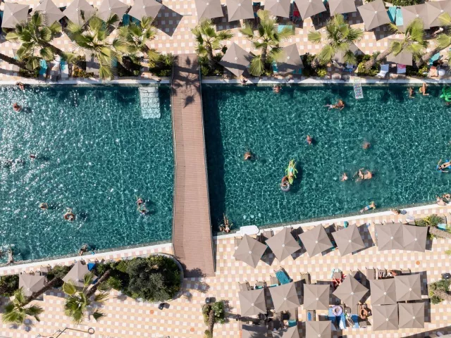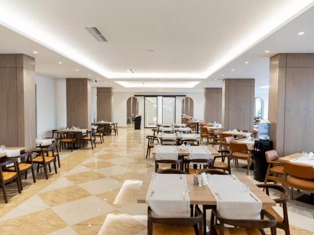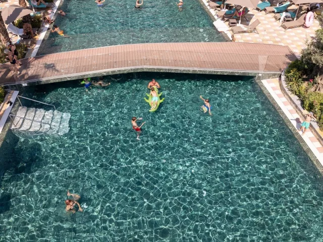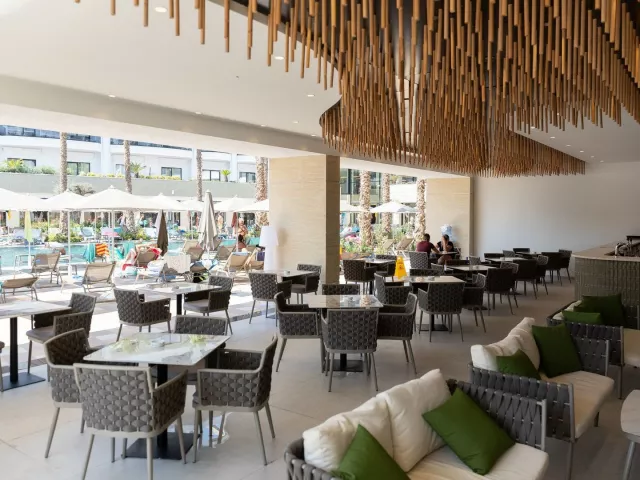 Hotel ponúka vstupnú halu s recepciou, reštauráciu, bezplatné WiFi v celom areáli, veľký bazén so skluzavkami a tobogánmi, ako aj lehátka a slnečníky pri bazéne bez poplatku. K dispozícii je aj bar pri bazéne a na pláži, spolu s konferenčnou miestnosťou.