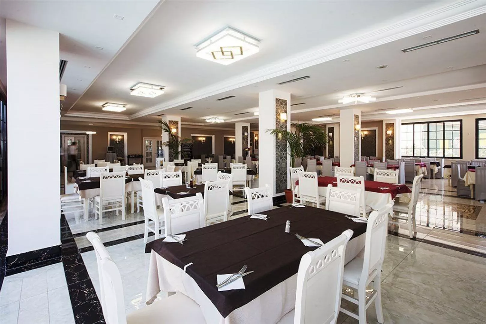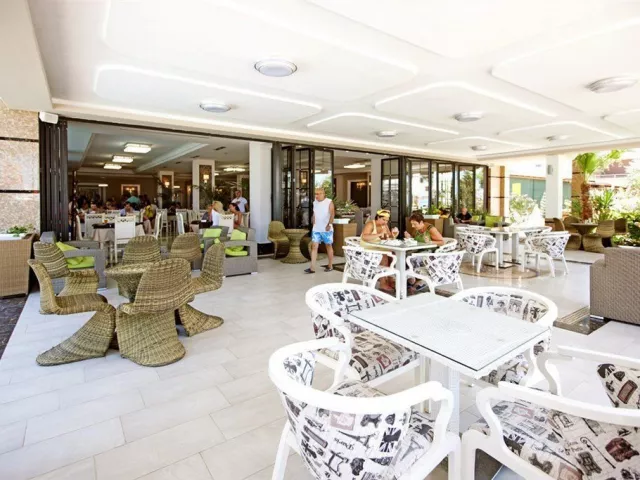 Hotel disponuje vstupnou halou, recepciou, trezorom na recepcii, výťahom, reštauráciou a barom pri bazéne a na pláži. WiFi je dostupné vo verejných priestoroch bez poplatku. K dispozícii je tiež bazén so širokou časťou pre deti, pričom lehátka a slnečníky sú zdarma.