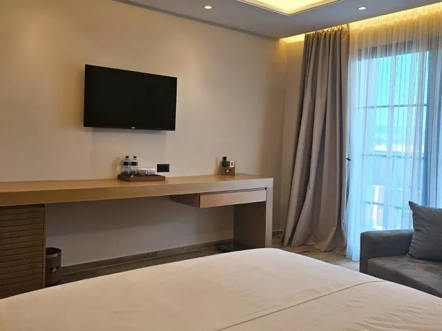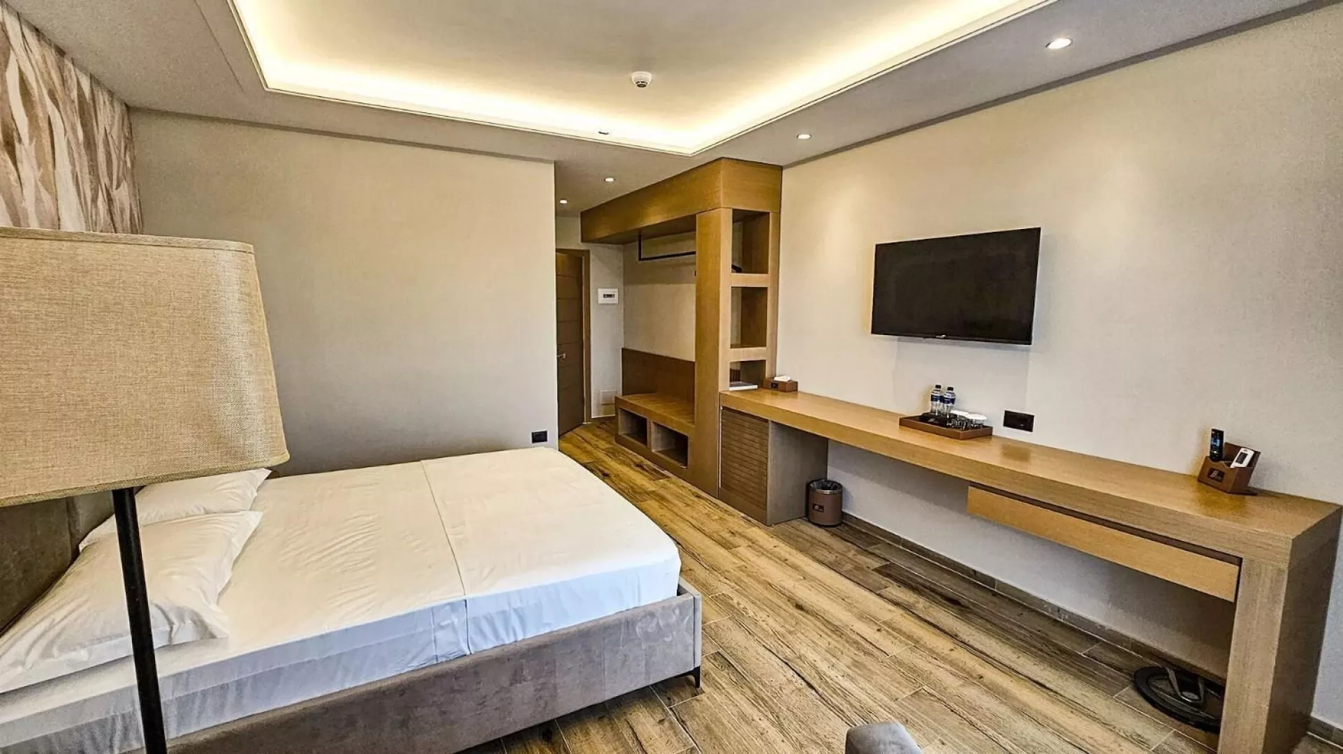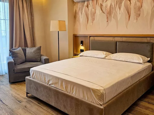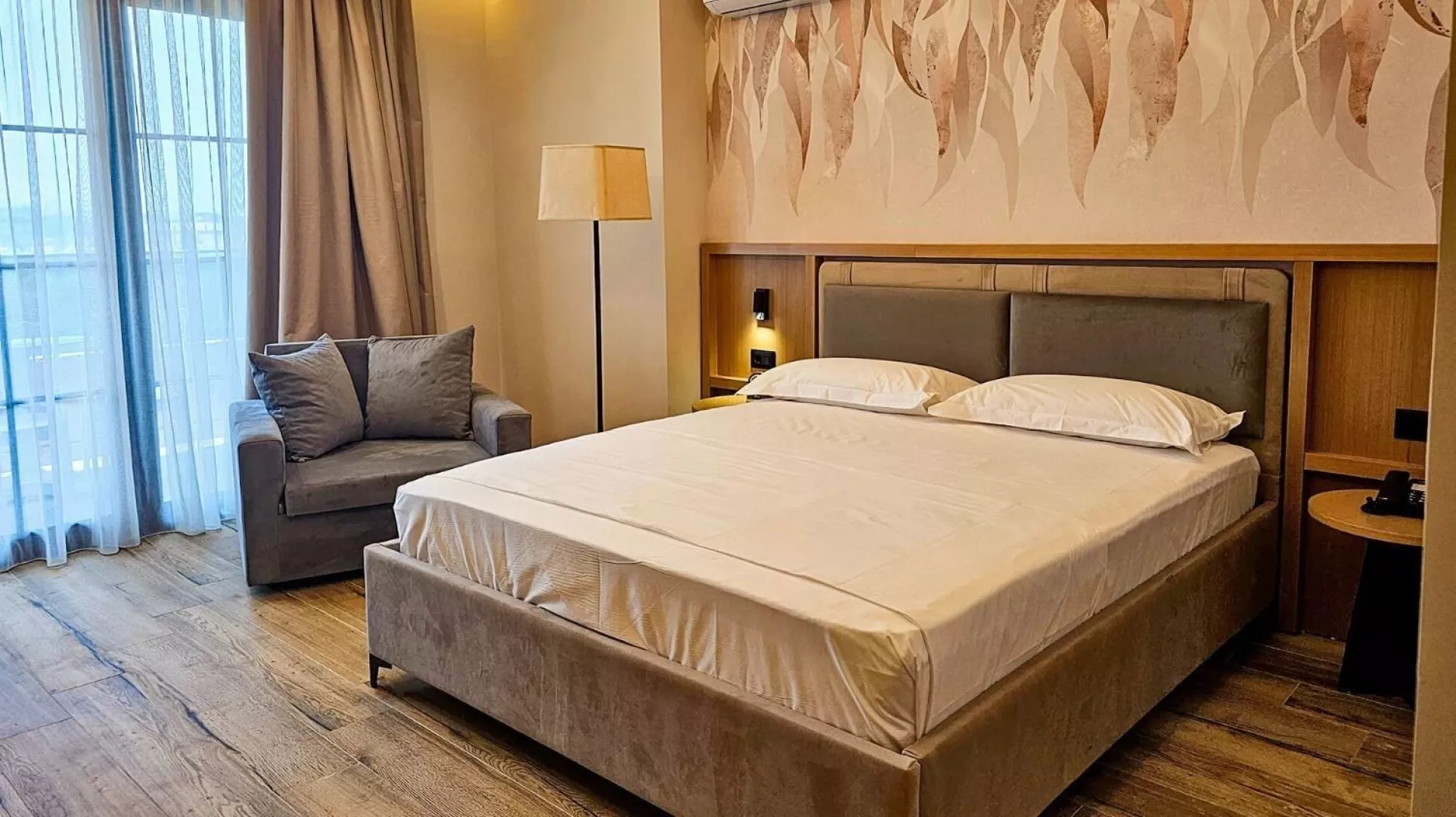 Nový, moderný hotel otvorený v roku 2023 sa nachádza v pokojnejšej časti mesta. Najbližšie obchody, bary a reštaurácie sú vzdialené približne 100 metrov, autobusová zástavka je taktiež okolo 100 metrov. Letisko v Tirane je vzdialené asi 33 km.