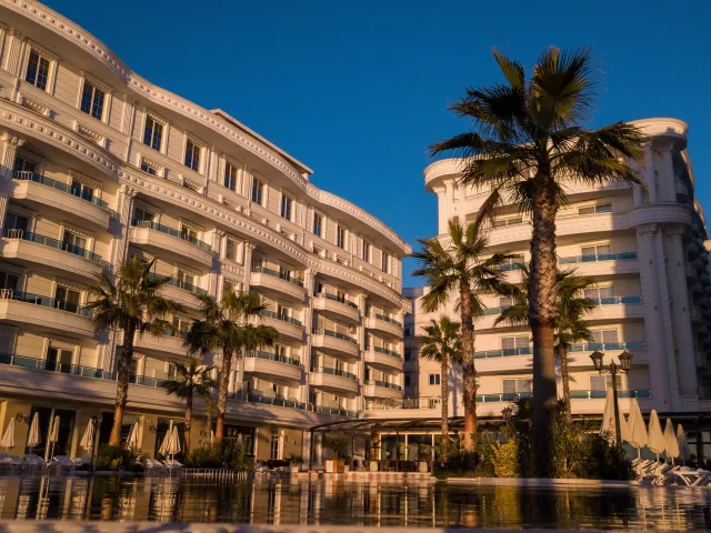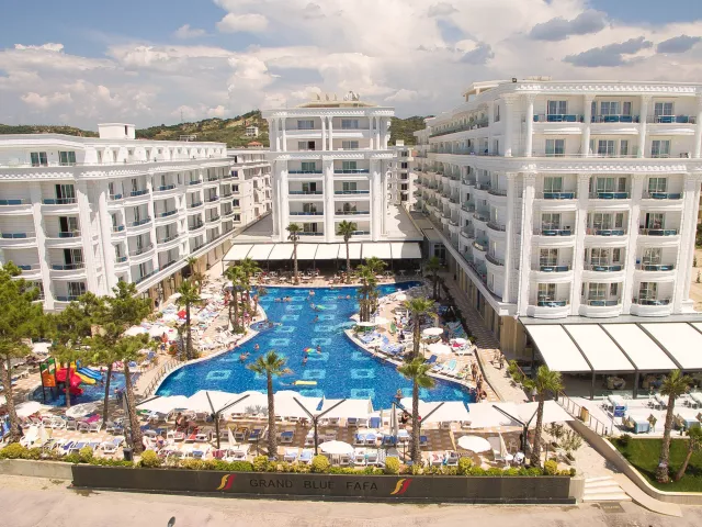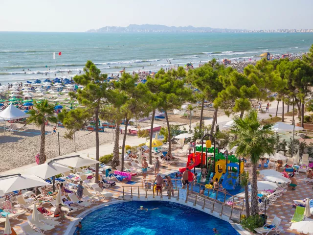 Moderný hotelový komplex pozostáva z niekoľkých budov a nachádza sa priamo pri pláži, približne 15 km od mesta Durrës a 40 km od najbližšieho letiska. Obchody a bary sú vzdialené iba cca 100 m, a autobusová zastávka je cca 150 m od hotela.