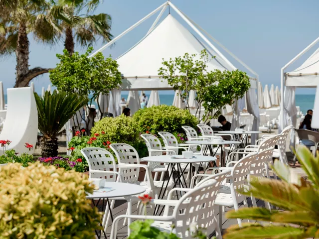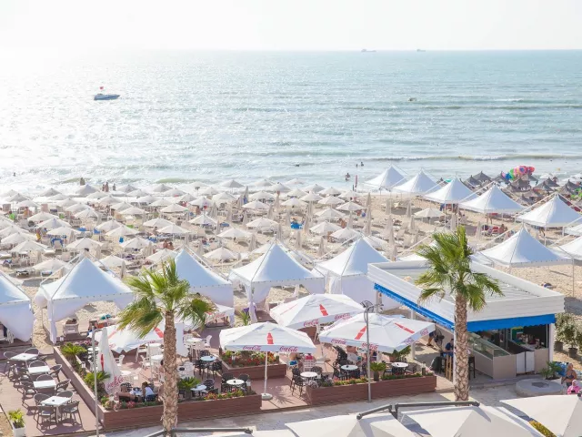 Piesočnatá pláž s pozvoľným vstupom do mora sa nachádza priamo pred hotelom a je prístupná cez promenádu. Lehátka a slnečníky na vyhradené hotelovej časti pláže sú k dispozícii zdarma.