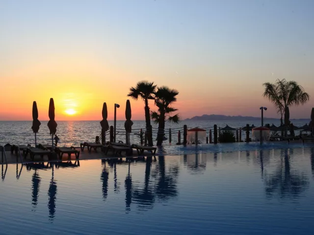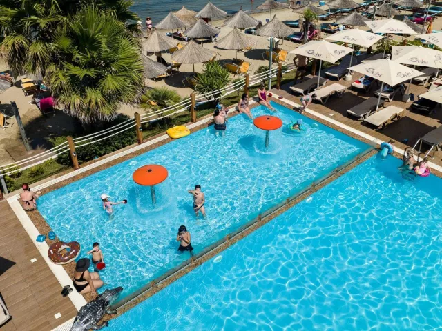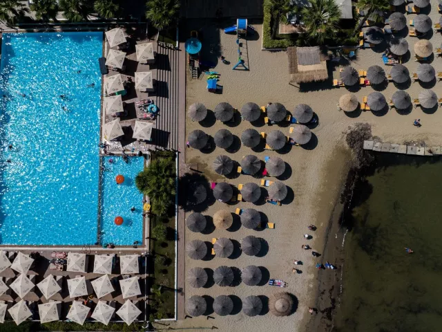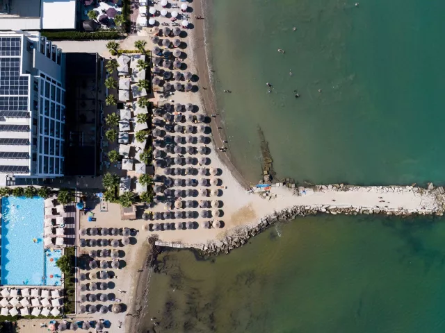 Verejná piesočnatá pláž s pozvoľným vstupom do mora sa nachádza priamo pri hoteli; lehátka a slnečníky na pláži sú k dispozícii zdarma.