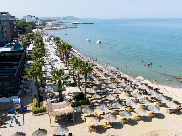 Moderný hotel sa nachádza na pokojnom mieste približne 2,5 km od centra Golemu a cca 15 km od Durrësu. Najbližšie obchody, bary a autobusová zastávka sú len 500 m od hotela. Letisko v Tirane je vzdialené približne 42 km.