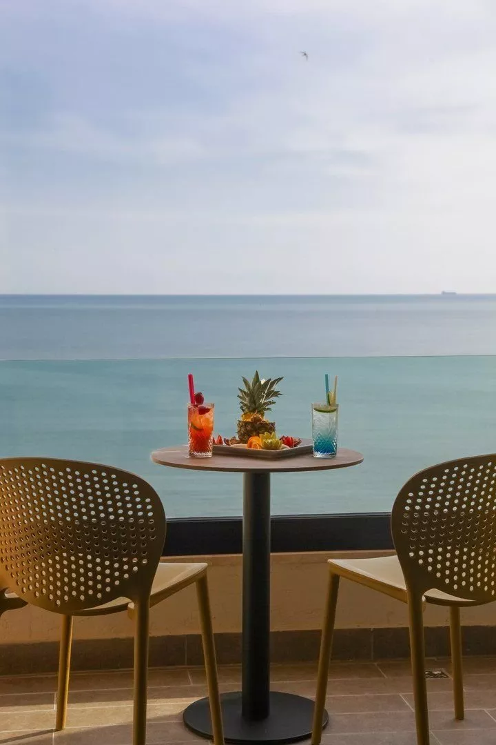 Hotel sa nachádza priamo pri verejnej piesočnatej pláži, kde sú lehátka a slnečníky poskytované bezplatne; osušky sú za poplatok. Vstup do vody je zabezpečený z móla, pričom pozvoľný vstup do mora je možné približne 300 m od hotela.