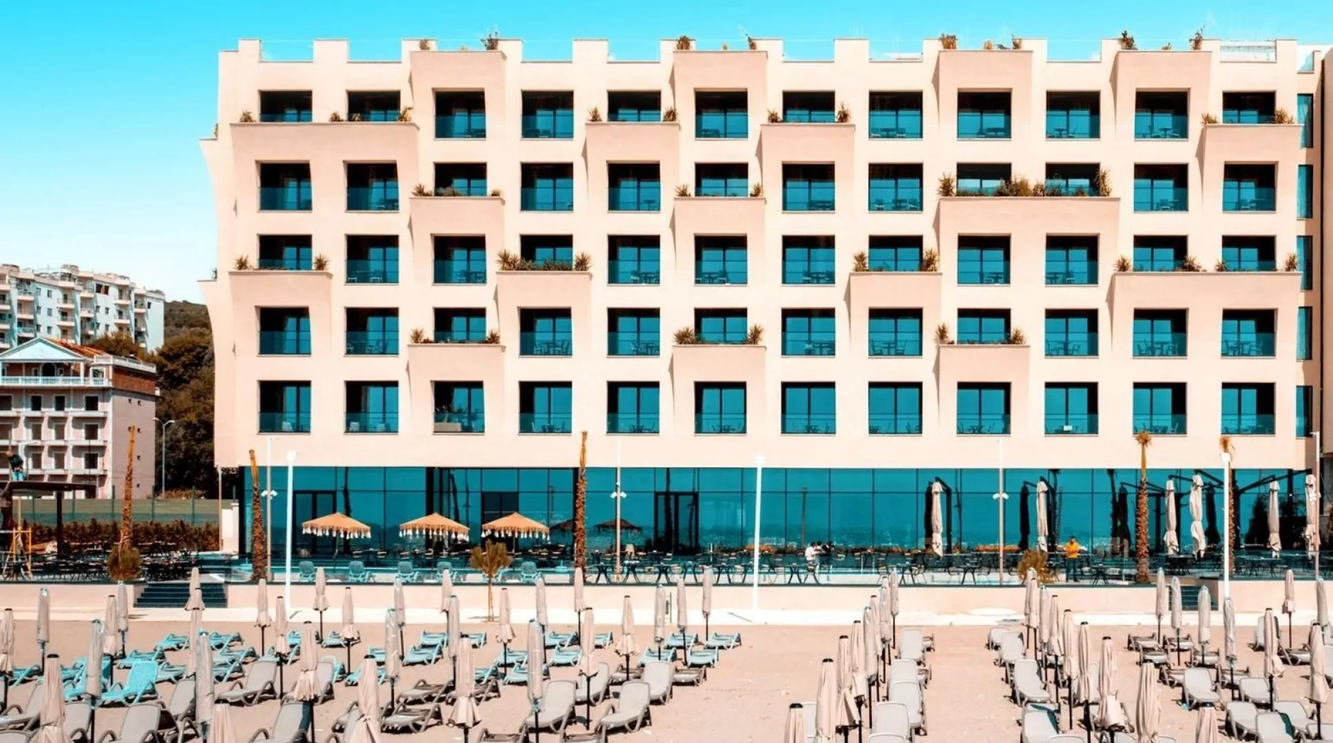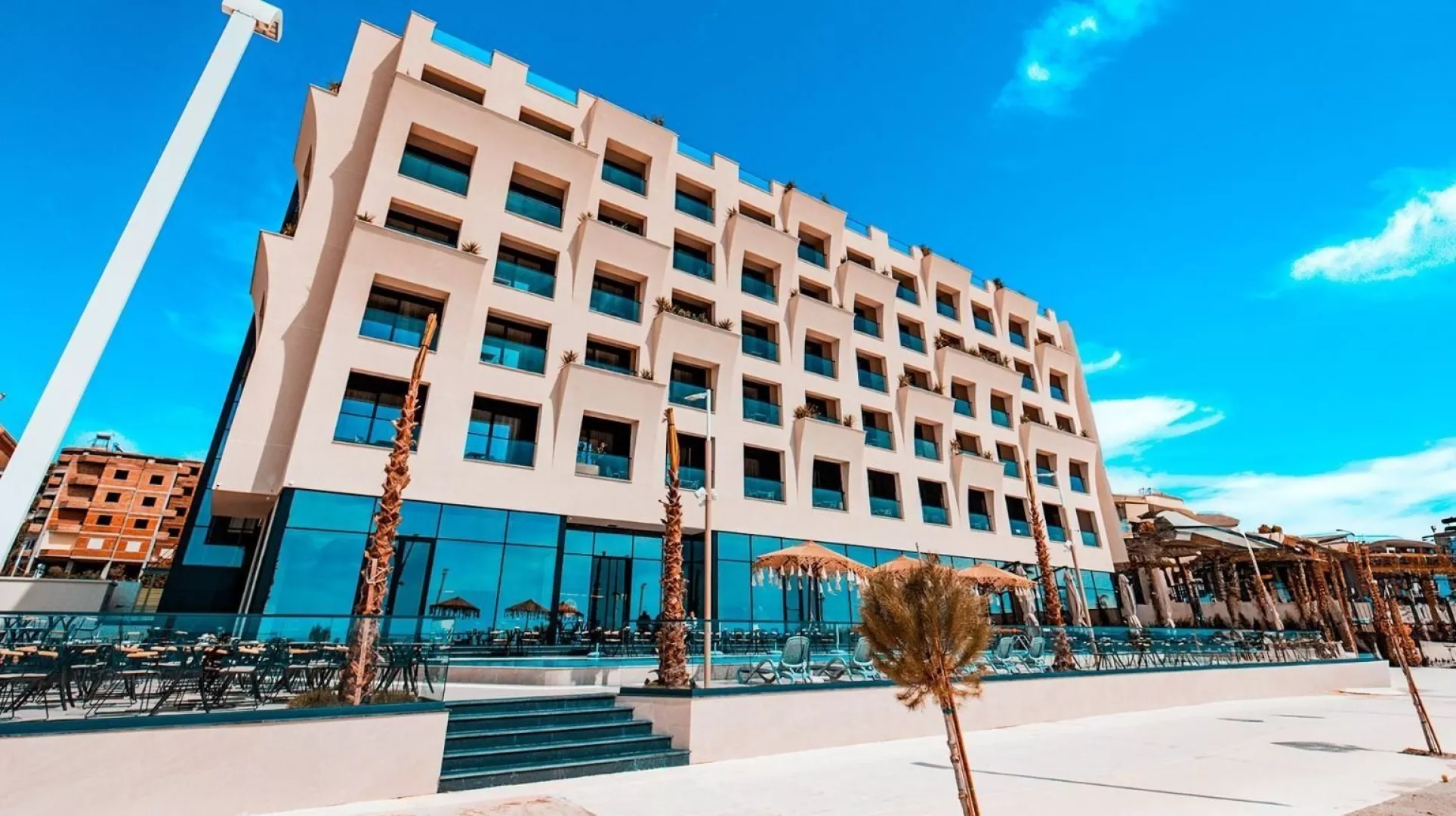 Středisko Durrës Vybavení vstupní hala recepcí 24/7 4x výtah hlavní restaurace se v 1. patře à la carte restaurace v přízemí 2 bary bazén lehátka a slunečníky u bazénu zdarma terasa s výhledem na moře WiFi zdarma Sport a zábava vodní sporty na pláži za poplatek výlety do okolí Informace v okolí hotelu mohou probíhat stavební práce