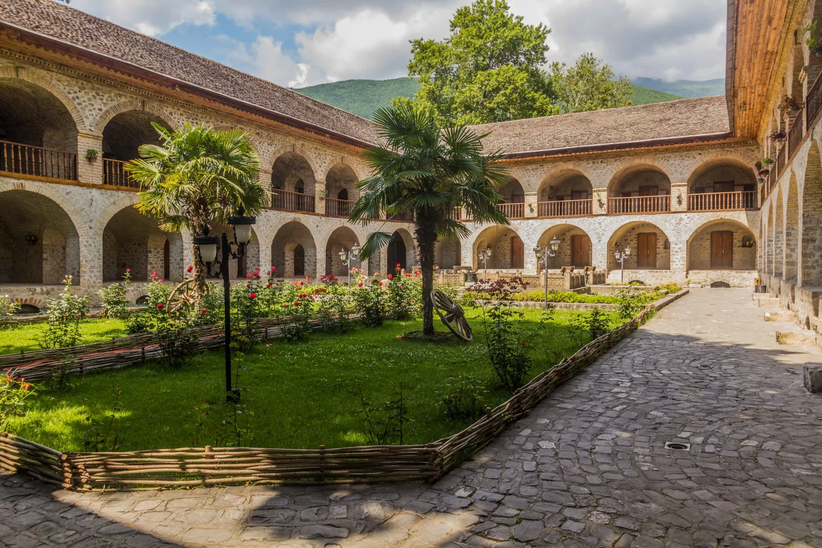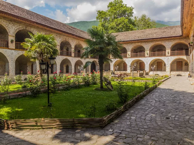 BAKU - SHEMAKHA - SHEKI Po raňajkách vyrážame do Sheki. Cestou sa zastavíme na čaj u miestnej rodiny v Shemakhe. Tunajšia pohostinnosť je povestná a návšteva rodiny nie je len o samotnom čaji, ale aj o jeho rituálnom podávaní. Tradičné poháre armudu hruškovitého tvaru sa držia za okraj, aby ste sa nepopálili, zatiaľčo spodná časť udržuje čaj teplý. K čaju dostanete domáci džem ( mürəbbə ) z bielych čerešní alebo vlašských orechov. Podľa miestnej tradície sa kúsok vloží do úst a potom sa zapije dúškom čaju. Ak vám čaj dolievajú, znamená to, že ste vítaní. Ak už naozaj nevládzete (hostitelia budú neúnavne dolievať), položte lyžičku na vrch pohára. V Azerbajdžane je to signál „ďakujem, stačilo“. Prichádzame do Sheki, kde si pozrieme palác Shekského chána a nevynecháme ani tradičnú karavánsaráj. Opäť deň nabitý zážitkami.