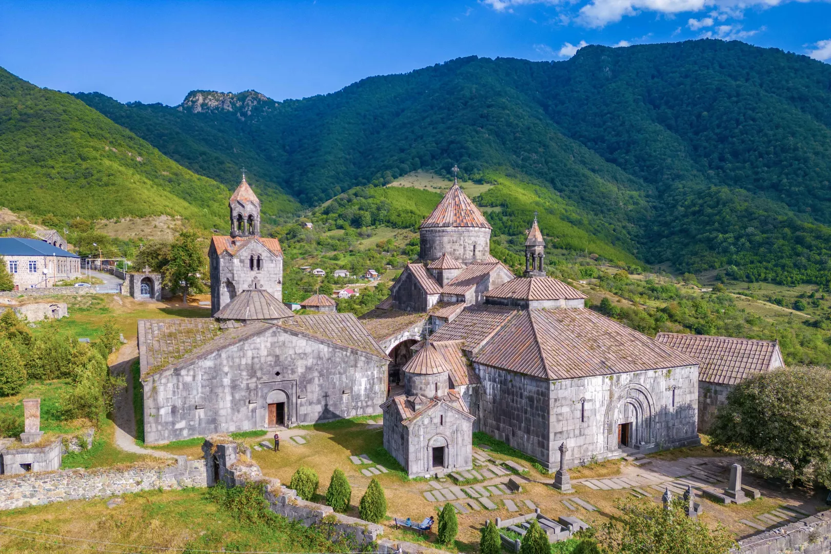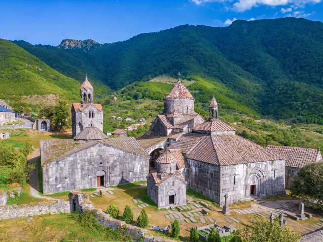 TBILISI – SADAKHLO – HAGHPAT – SEVAN – JEREVAN Ráno opúšťame Gruzínsko a v Sadakhlo prekračujeme hranicu do Arménska. Prvá zastávka patrí kláštoru Haghpat, ktorý leží v arménskej provincii Lori. Ide o stredoveký náboženský komplex z 10. storočia. Kláštor, ktorý je zapísaný na zozname svetového dedičstva UNESCO, sa vyznačuje pôsobivou architektúrou, prepracovanými kamennými rezbami a jedinečnou zmesou arménskeho náboženského umenia. Prejdeme sa k jazeru Sevan, jednému z najväčších sladkovodných vysokohorských jazier na svete, často označovanému ako „Perla Arménska“. Jazero vyniká svojou sladkou a úžasne modrou vodou, ktorá odráža okolitú horskú krajinu. Po tomto fotogenickom mieste navštívime kláštor Sevanavank, historický komplex nachádzajúci sa na polostrove Sevan. Tento olostrov bol pôvodne ostrovom, no v dôsledku poklesu hladiny jazera sa zmenil na polostrov. Arménsko nás sokonale privítalo svojou krásou a my pokračujeme do jeho hlavného mesta, Jerevanu.