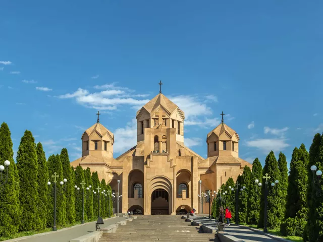 JEREVAN Toto mesto je už po stáročia známe ako „ružové mesto“ kvôli farbe sopečného tufu použitého pri jeho stavbe. Jerevan je jedným z najstarších nepretržite obývaných miest na svete, založené v roku 782 pred Kristom, a jeho ulice sú plné histórie, kultúry a živej energie. Počas prehliadky budeme mať tiež možnosť preskúmať miestne trhy, parky a vychutnať si živú kaviarenskú kultúru mesta. Jerevan spája staré s novým a ponúka návštevníkom jedinečný pohľad na bohatú minulosť a čarovnú súčasnosť Arménska. Navštívte Vernissage - živý trh pod holým nebom a kultúrny fenomén v srdci mesta, zhromažďujúci miestnych umelcov, remeselníkov a predajcov, ktorí vystavujú a predávajú rozmanitú škálu ručne vyrábaných remeselných výrobkov, tradičného arménskeho umenia, suvenírov, šperkov, kobercov, keramiky a ďalších jedinečných predmetov. Jedným z najživších miest v Jerevane je trh Gum neďaleko obchodného centra Tashir, ktorý bol otvorený počas rokov bývalého Sovietskeho zväzu. Deň zakončíme dobrou večerou v niektorej z najlepších reštaurácií mesta.