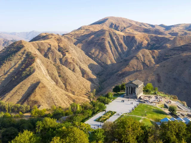 JEREVAN - GARNI - SYMFÓNIA KAMEŇOV - GEGHARD - JEREVAN Dnes si pravíme výlet do Garni, kde sa nachádza jediný stojaci pohanský chrám v Arménsku, postavený v 1. storočí nášho letopočtu. Táto jedinečná stavba bola zasvätená Mihrovi, bohu svetla a čistoty, a stelesňuje starovekú predkresťanskú vieru Arménska. Prejdeme sa k Symfónii kameňov, úžasnému čadičovému skalnému útvaru, ktorý príroda formovala po stáročia. Skaly v rokline sa vyformovali v rôzne stĺpovité tvary, pripomínajúce prirodzený orchester stojacich kameňov, čo viedlo k názvu „Symfónia kameňov“. Pokračujeme do kláštora Geghard, pomenovaného podľa legendárnej kopije, ktorá prebodla Kristovo telo a bola tu uchovávaná po stáročia. Hoci presný dátum založenia kláštora zostáva neznámy, súčasný komplex pochádza z polovice 13. storočia. Večer sa vrátime do Jerevanu a znova sa môžme vydať do jeho večerných ulíc.