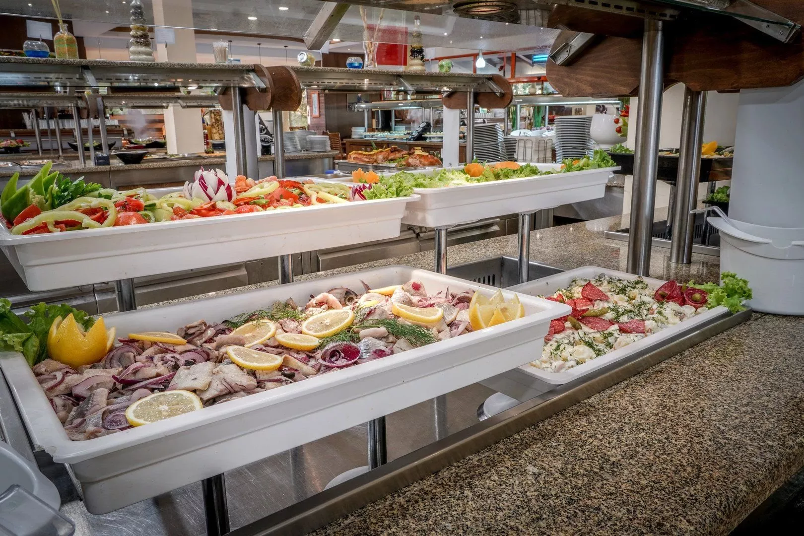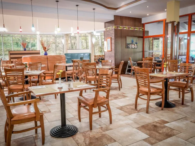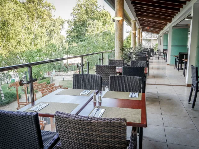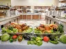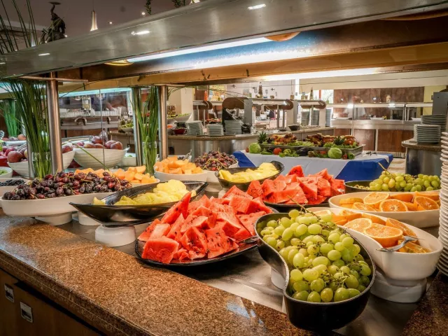 Ultra All Inclusive zahŕňa raňajky (7:30-10:00), neskoré raňajky (10:00-11:00), obedy (12:30-14:30) a večere (18:30-21:30) formou bufetu, tematické večere a občerstvenie počas dňa. Počas pobytu je možné využiť á la carte reštaurácie v okolí hotela (voucher potrebné vyžiadať na recepcii).