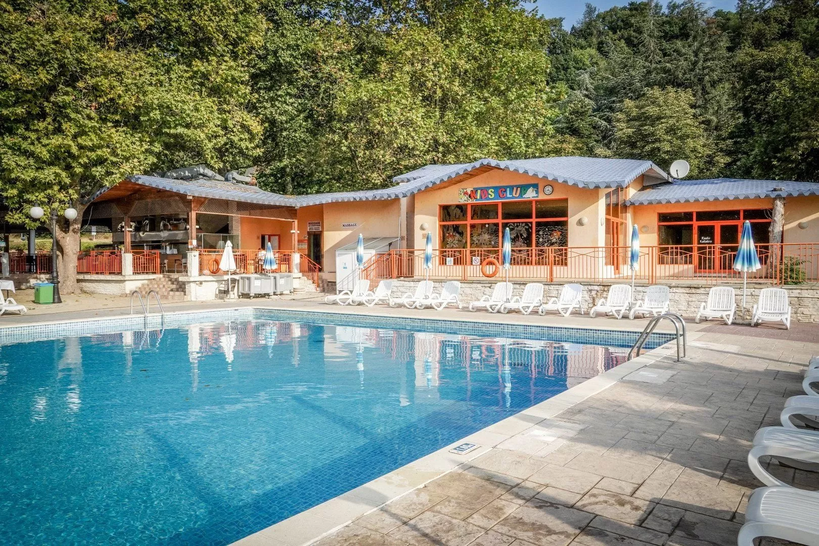Hotel ponúka vstupnú halu, recepciu, zmenáreň, výťah, hlavnú reštauráciu s terasou, vonkajšie BBQ, lobby bar, snack bar, lounge bar, coffee bar, bazén, bazén pre deti, slnečníky a lehátka pri bazéne (dľa dostupnosti) zdarma, osušky zdarma (na Towel service kartu) a WiFi v areáli hotela zdarma. Za poplatok sú k dispozícii požičovňa bicyklov a parkovisko.