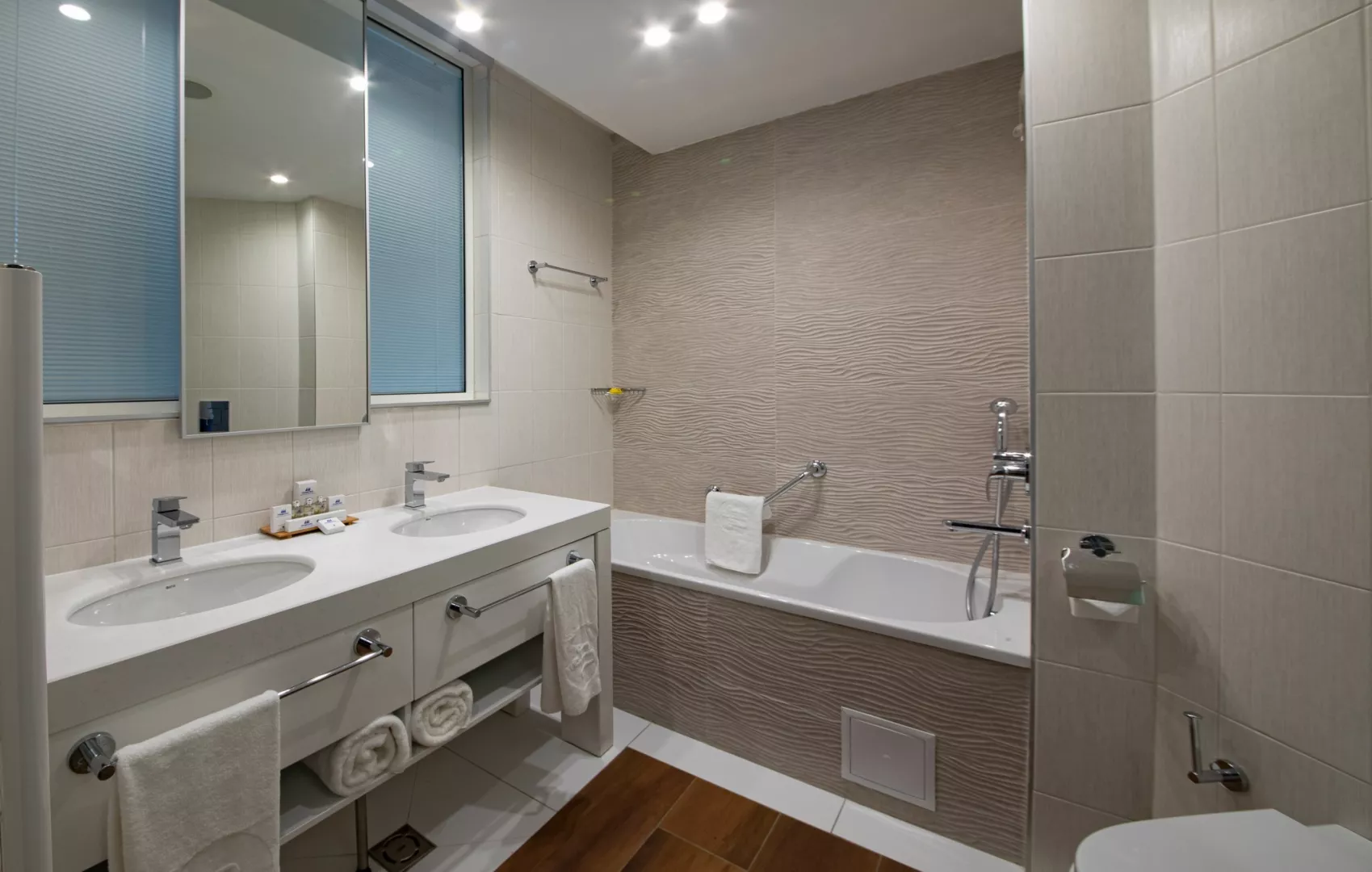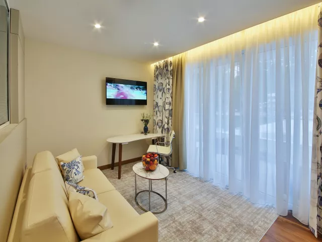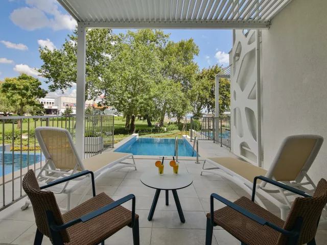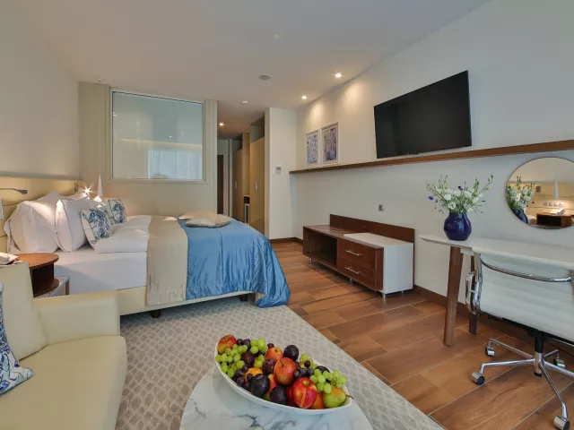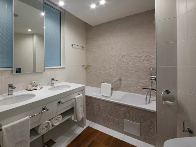 Dvojlôžková izba: kúpeľňa/WC (sušič vlasov), klimatizácia, TV/sat., telefón, minibar (za poplatok), trezor (za poplatok), set na prípravu kávy a čaju, balkón alebo terasa. Ostatné typy izieb (pokiaľ nie je uvedené inak, majú izby vyššie uvedené vybavenie) Dvojlôžková izba, Výhľad na more: výhľad na more Dvojlôžková izba, Swim-Up: zdieľaný bazén alebo malé bazéniky na terase Apartmán: priestrannejší, spálňa a obývacia časť