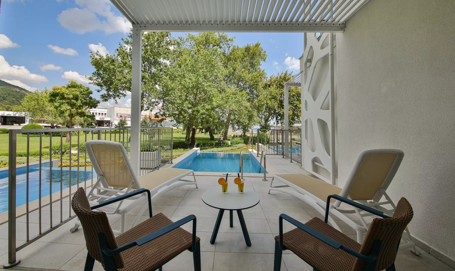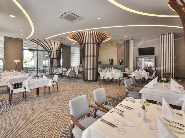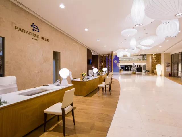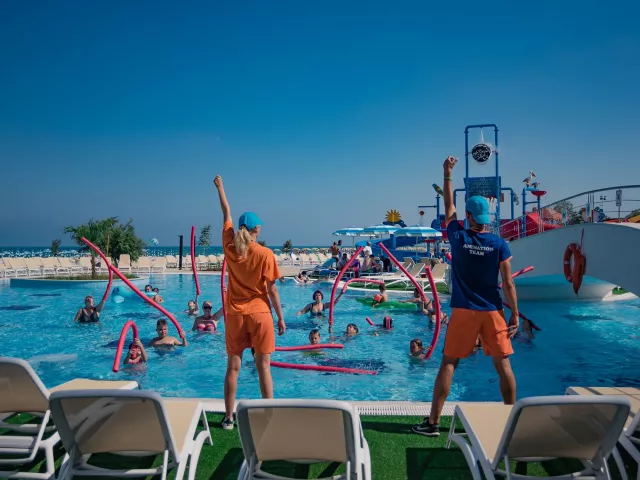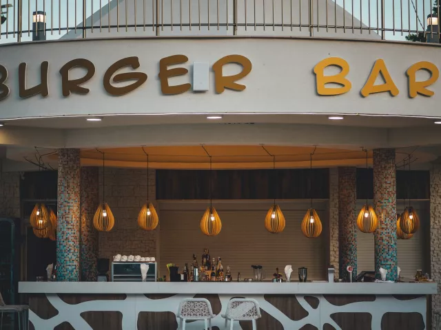 Vstupná hala s recepciou, lobby bar, reštaurácia, reštaurácia à la carte. V záhrade bazén (ležadlá a slnečníky pri bazéne zadarmo), detský bazén s mini-aquparkom, burger bar pri bazéne.