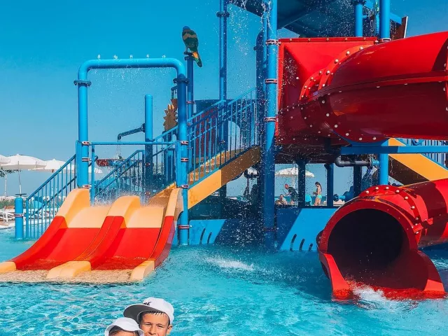 Šmykľavka, bazén so šmykľavkami, ihrisko, miniklub, detská postieľka zadarmo (na vyžiadanie).
