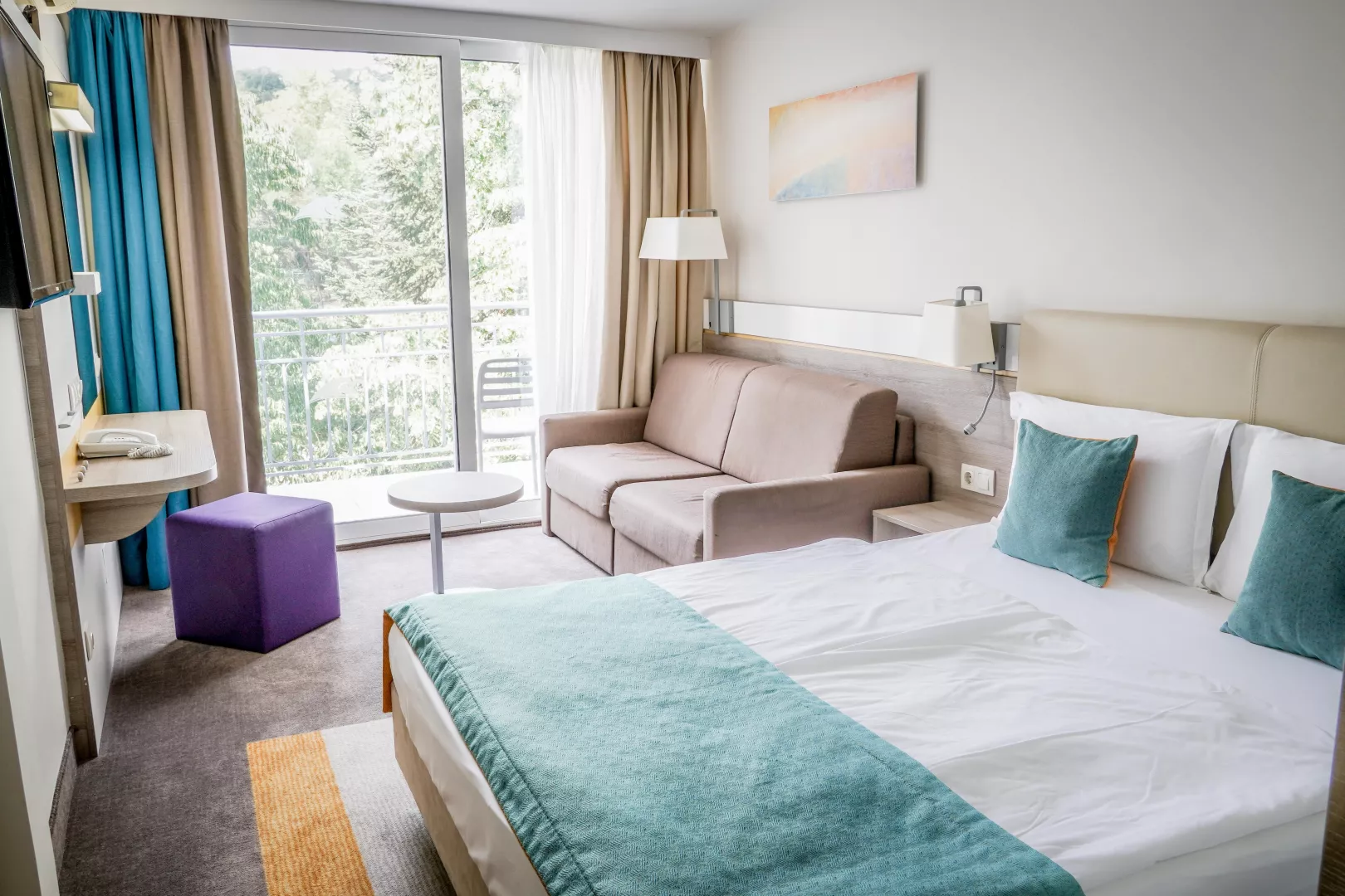 Dvojlôžkové izby s možnosťou 1 prístelky majú vlastné sociálne zariadenie (sprcha, WC, sušič vlasov), klimatizáciu, SAT/TV, telefón, balkón a minibar. Trezor je k dispozícii za príplatok a detská postieľka je zdarma.