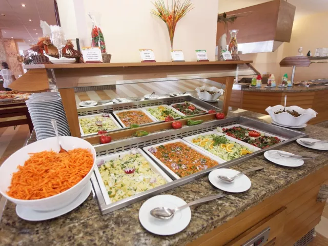 All inclusive zahŕňa raňajky (7:30-10:00), obedy (12:30-14:30) a večere (18:00-21:00) formou bufetu, občerstvenie počas dňa, ako aj nealkoholické a alkoholické nápoje miestnej výroby (10:00-23:00). Stravovanie prebieha v reštaurácii susedného hotela Mura a nápoje sú podávané aj v lobby bare hotela Slavuna.