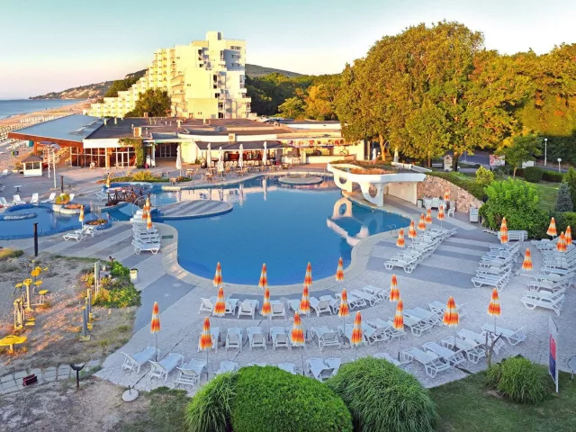 Hotel sa nachádza priamo pri krásnej piesočnatej pláži v južnej časti strediska, v blízkosti prírodnej rezervácie Baltata, približne 40 km od letiska Varna.