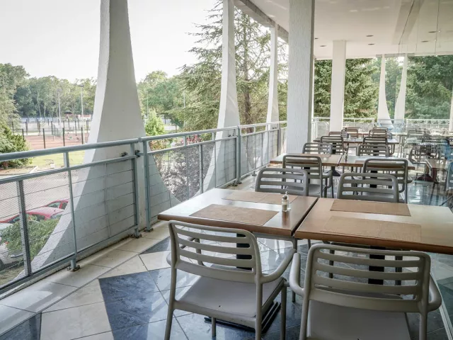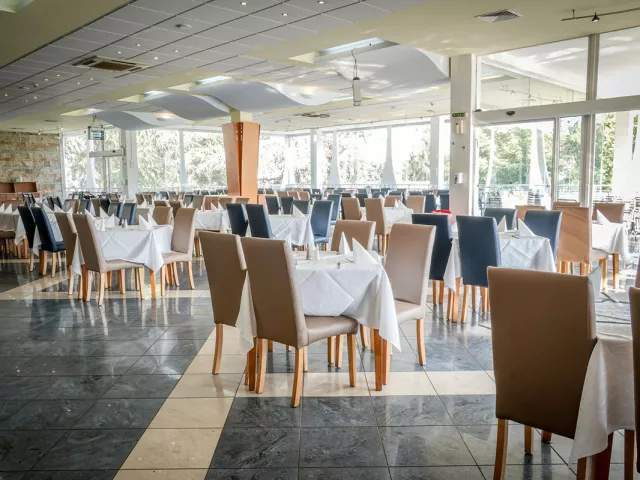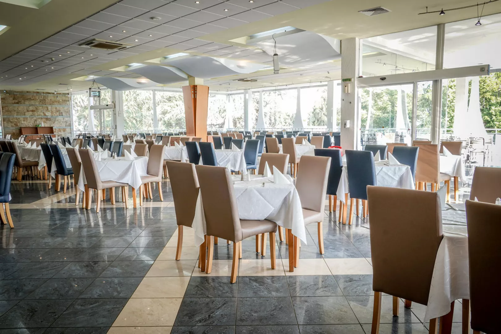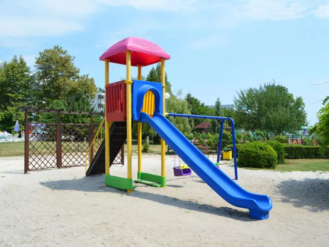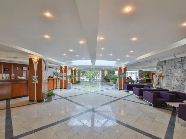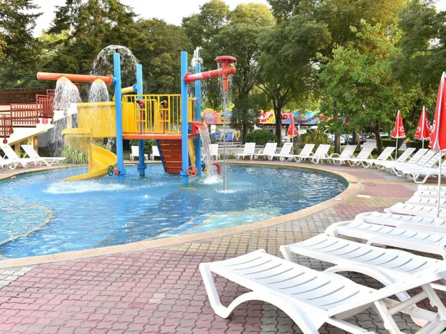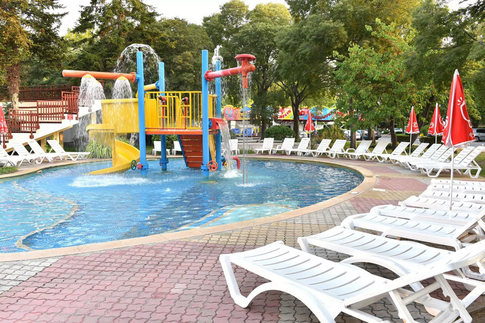 Vybavenie:Vstupná hala s recepciou, reštaurácia, ktorú klienti využívajú v hoteli Laguna Garden, WiFi, lobby bar, vonkajší bazén a detský bazén s toboganmi pre deti (v Laguna Garden), stolný tenis, aqua aerobik, animačné programy 6 dní v týždni, detský klub a detské ihrisko (v Laguna komplex),