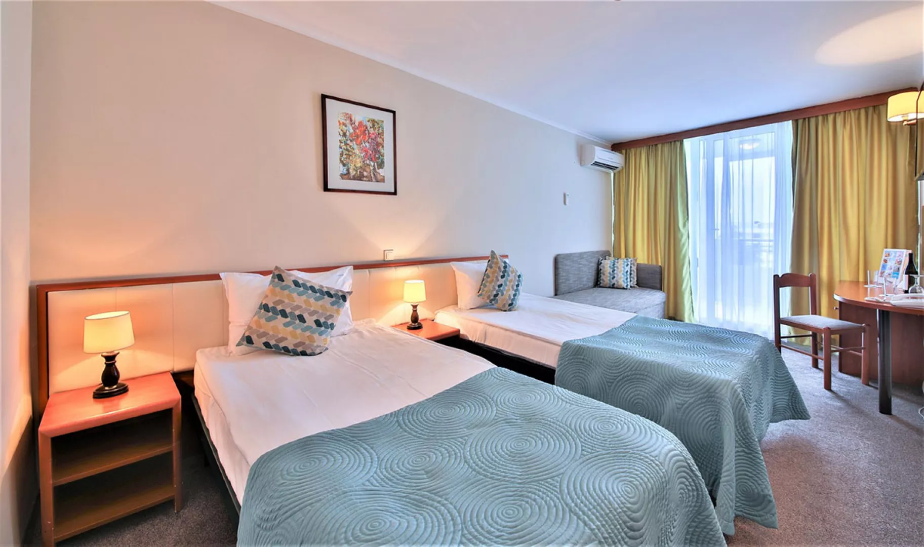 klimatizácia, rádio, SAT-TV, chladnička (za poplatok), balkón, trezor (na