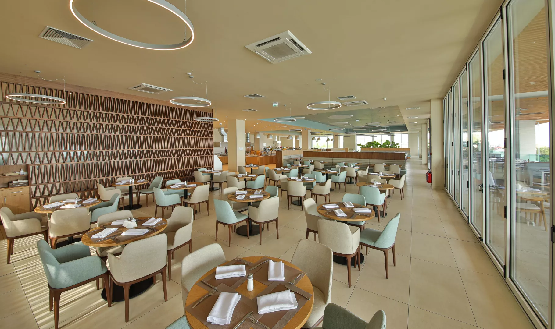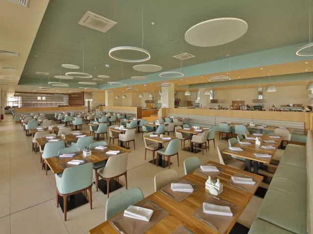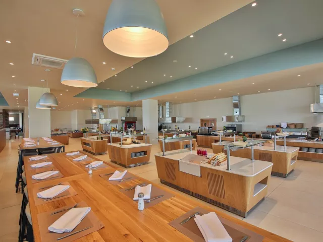 All inclusive ponúka raňajky (7:30-10:30), obedy (12:30-14:30), popoludňajšie občerstvenie (15:30 – 17:00) a večere (18:30-21:00) formou bufetu, rovnako ako nealkoholické (do polnoci) a alkoholické nápoje miestnej výroby (8:30-23:00) v určených časoch a miestach, po ktorých nasleduje služba za poplatok.