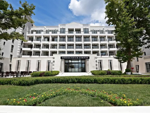 White Rock Castle sa nachádza v malebnom mestečku Balchik, ktorý sa prezýva „mesto bielych skál“, od čoho je samotný názov hotela odvodený. Komplex ponúka pokojné, príjemné prostredie a priateľskú atmosféru. Neďaleko hotela sa nachádza známa botanická záhrada, ktorá je vyhľadávaným cieľom mnohých turistov. Komplex je moderne vybavený a je možné ho odporučiť klientom vyhľadávajúcim odpočinkovú dovolenku v kombinácii s prechádzkami v malebnom prostredí obklopenom horami a skalami. Severná mestská piesočnatá pláž leží 1,5 kilometra od hotela a dá sa na nej dopraviť ľahko miestnou hromadnou dopravou, 300 metrov od hotela sa potom nachádza pláž s kamenistým vstupom do vody.