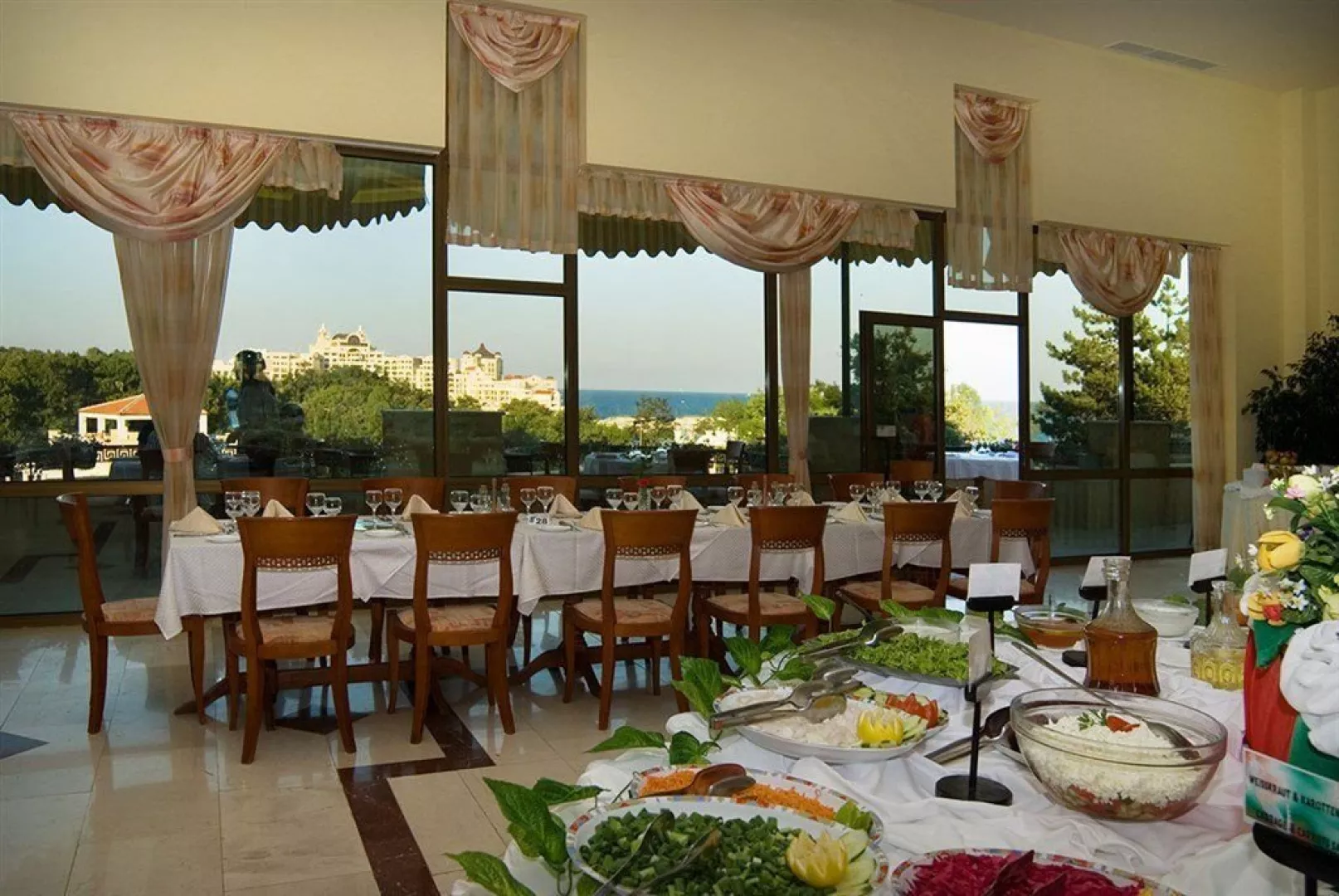 Hotel ponúka stravovanie formou All Inclusive, ktoré zahrňuje raňajky, obedy a večere formou bufetu, ako aj ľahké občerstvenie počas dňa. V reštaurácii je potrebné dodržiavať formálne oblečenie počas večere.