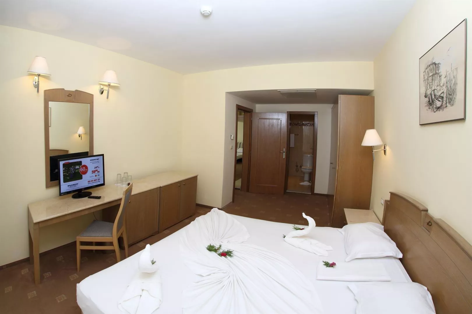 Izby sú vybavené sprcha/vaňa sušič vlasov centrálna klimatizácia TV WiFi minibar mini chladnička trezor (za príplatok) balkón Prístelka rozkladacia pohovka.