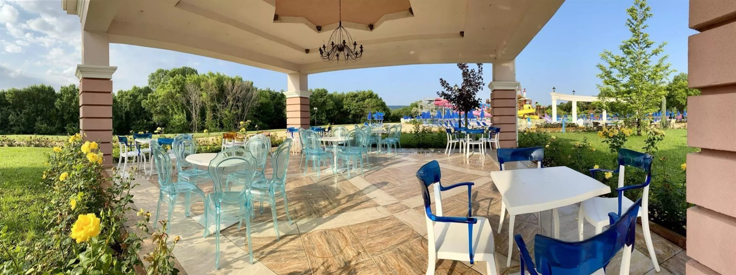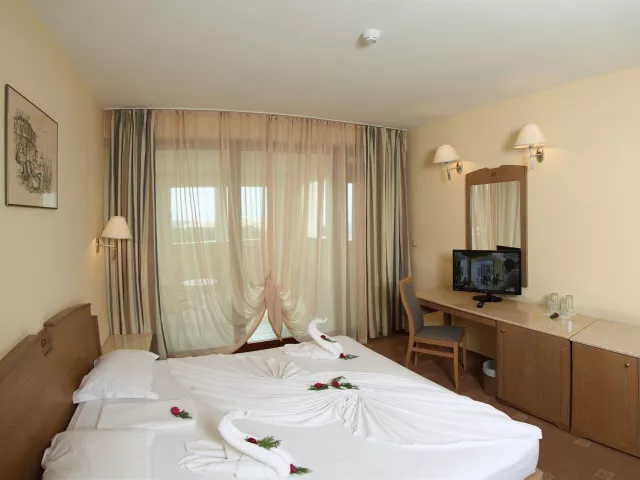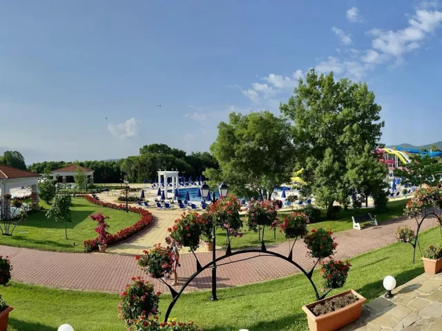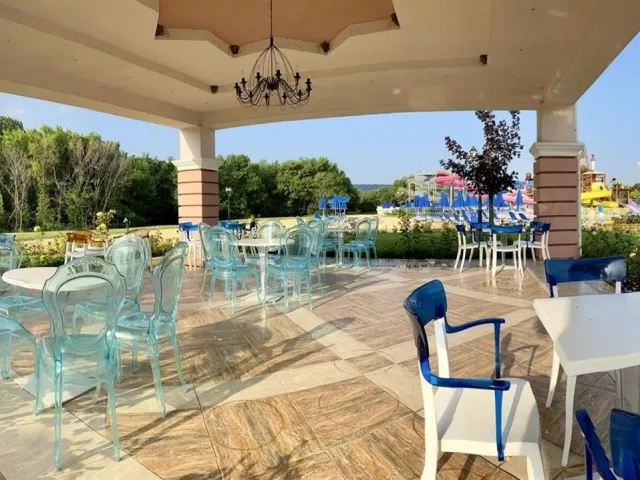 vonkajší bazén (slnečníky, ležadlá - zdarma) vodný park (otvorený od 1. júna do 15. septembra) - zdarma pri rezervácii AI food concept hlavná reštaurácia (nie v hlavnej budove) ala carte reštaurácia talianska a bulharská tematická reštaurácia lobby bar bar pri bazéne .