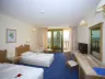 Piesočnatá pláž pred hotelom ponúka lehátka a slnečníky zdarma, ako aj plážový bar pre osvieženie počas dňa.