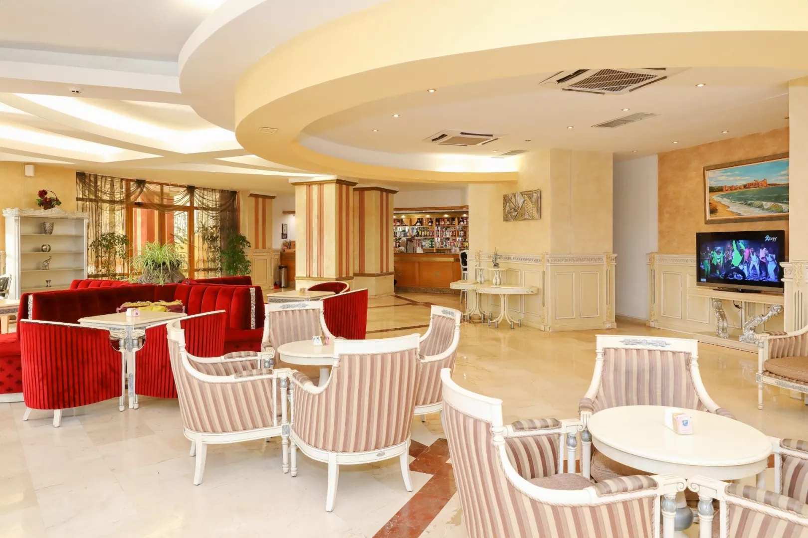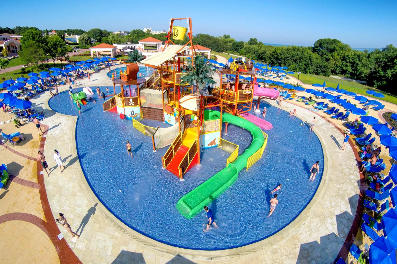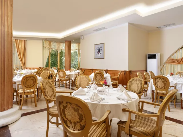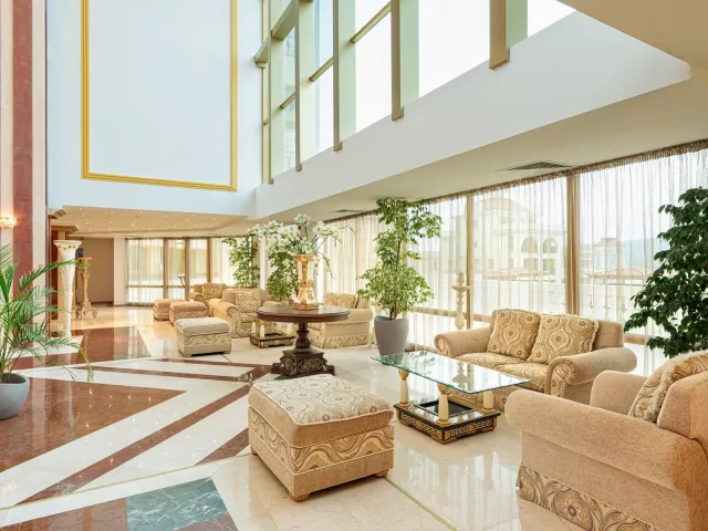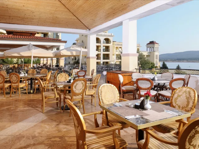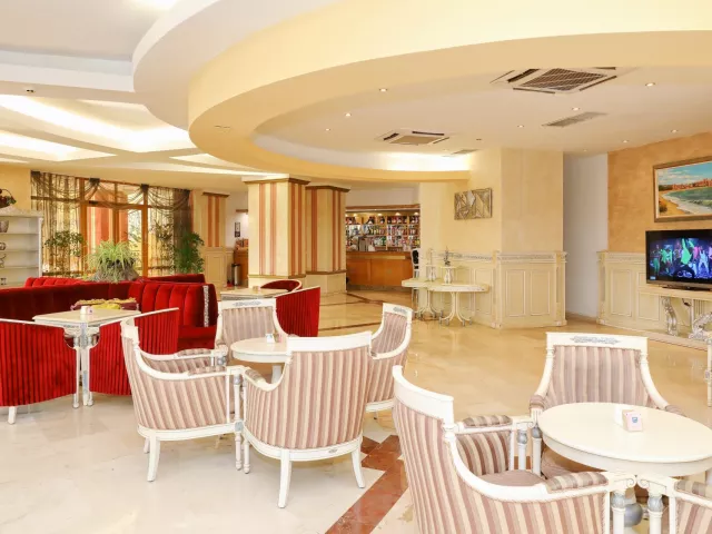 vstupná hala s recepciou hlavná reštaurácia niekoľko reštaurácií s obsluhou bar snack bar obchodíky konferenčná miestnosť pripojenie k internetu Wi-Fi (za poplatok) amfiteáter bazén (lehátka a slnečníky zadarmo) vnútorný bazén (len pre hostí hotela Marina Royal Palace) bazén s integrovaným bazénom aquapark (1.6.–15.9.) detský bazén miniklub (pre deti 3–16 rokov) detské ihrisko