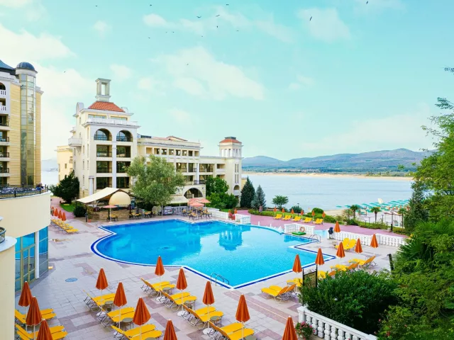 Komplex Duni je jedným z najmodernejších letovísk v celom Bulharsku. Rozkladá sa v miernom svahu pri krásnej širokej zátoke, v blízkosti prírodnej rezervácie Ropotamo, v prostredí plnom zelene. Areál sa skladá z piatich moderne vybavených luxusných hotelov ponúkajúcich služby na vysokej úrovni. Hotely, tvoriace celý komplex - Marina Royal Palace, Pelikan Hotel, Marina Beach, Holiday Village a Belleville. Výhodou komplexu je, že hostia môžu služby All Inclusive čerpať aj v ostatných hoteloch Duni Royal Resortu. Od mesta Sozopolu je komplex vzdialený 6 km, milovníkom prechádzok odporúčame aj pešiu návštevu Sozopolu. Za návštevu určite stojí aj prírodná rezervácia Ropotamo, kde môžete absolvovať lodný výlet po rieke nádhernou krajinou až k miestu, kde rieka ústi do Čierneho mora. Duni Royal Resort odporúčame aj tým najnáročnejším klientom a pre svoju atmosféru a množstvo zábavného vyžitia aj rodinám s deťmi. Marina Royal Palace je veľmi luxusný hotel ponúka svojim hosťom nezabudnuteľnú a vzrušujúcu atmosféru v elegantnom a modernom prostredí. Hotel má výhodnú polohu, priamo pri krásnej pláži, v malej príjemnej zátoke. V porovnaní s ostatnými hotelmi v komplexe disponuje Marina Royal Palace širšou ponukou služieb na veľmi vysokej úrovni.