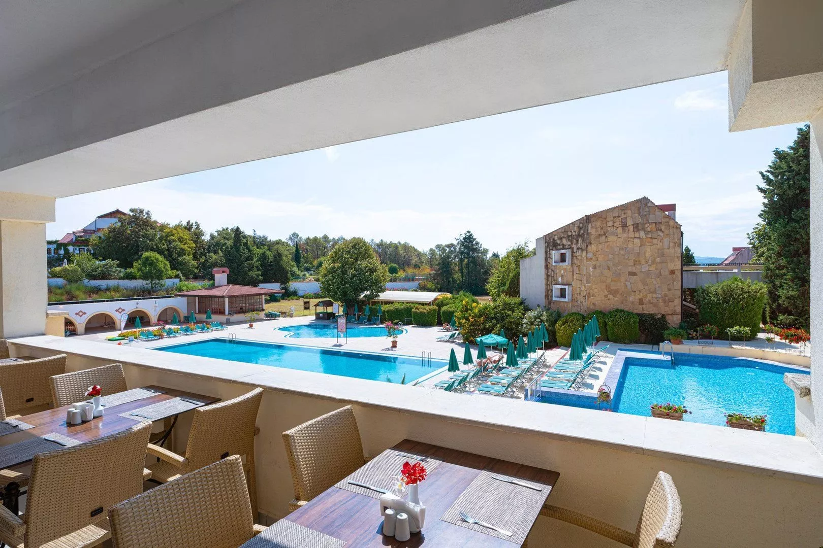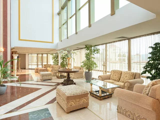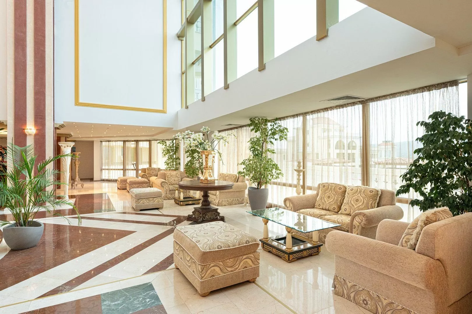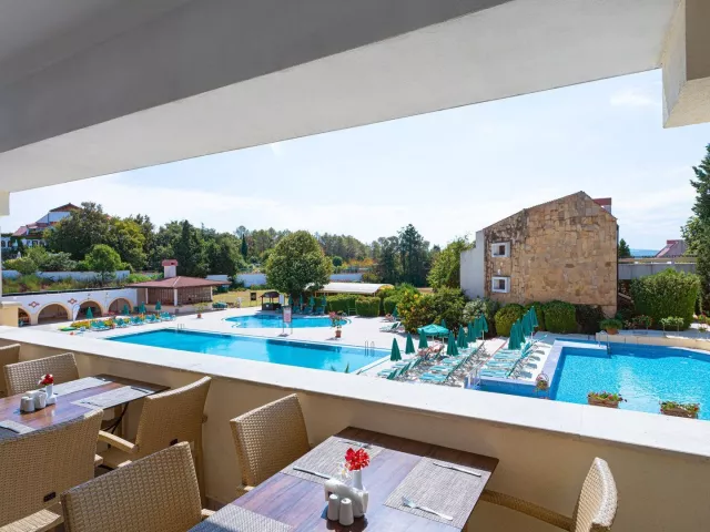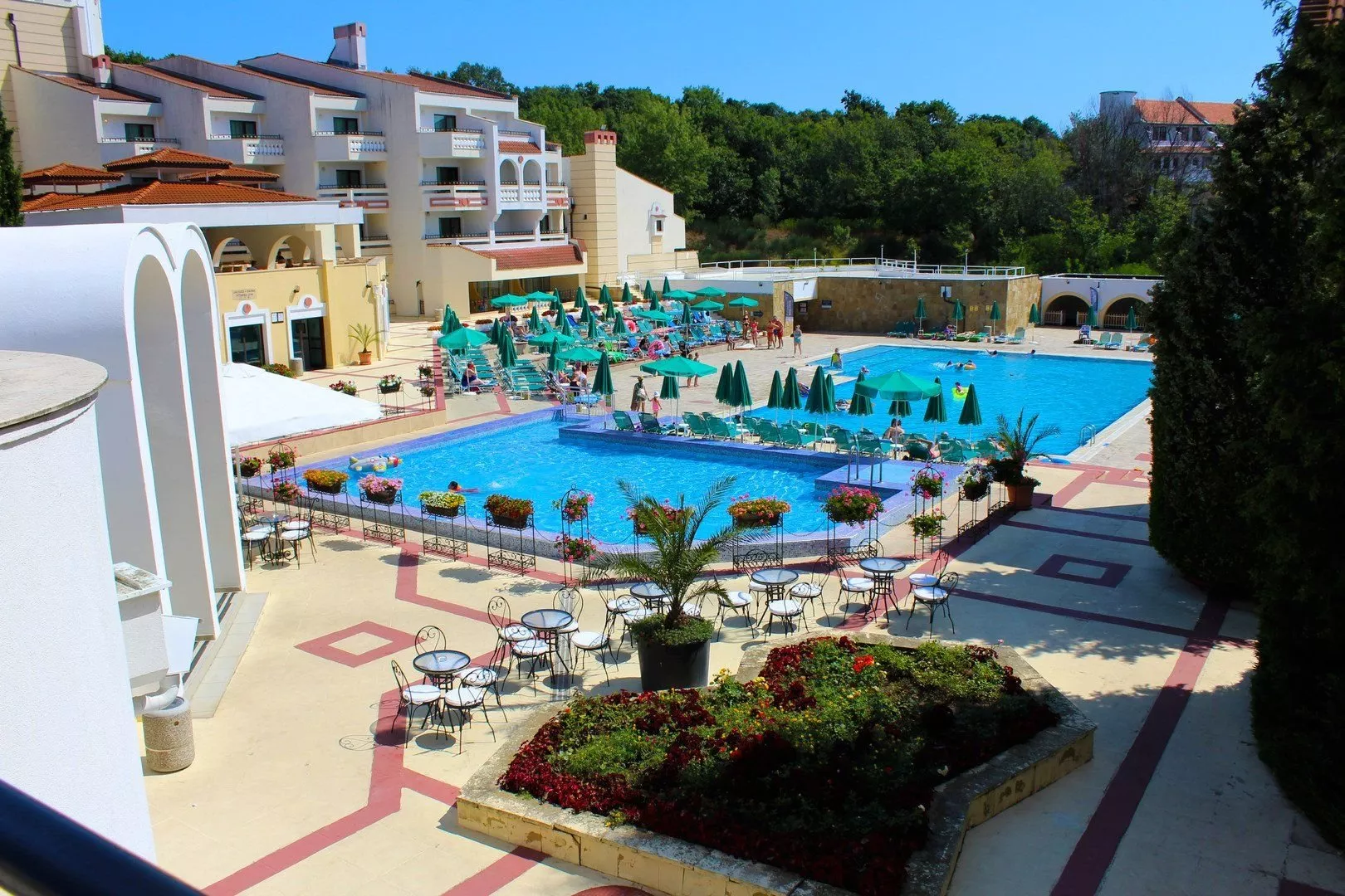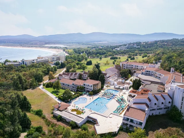 Hotel Pelican patrí do komplexu Duni Royal Resort a je postavený v štýle tradičných bulharských kláštorov. Areál sa skladá z piatich luxusných hotelov, ponúkajúcich široké spektrum služieb na vysokej úrovni. V hoteli sa nachádza 238 izieb, 8 poschodí, vstupná hala s recepciou, výťahy, 7 reštaurácií (vrátane niekoľkých à la carte), 10 barov a amfiteáter. V areáli nájdete 5 bazénov a aquapark. Je možný prístup k službám v rámci celého rezortu. WiFi pripojenie je dostupné za poplatok v areáli hotela.