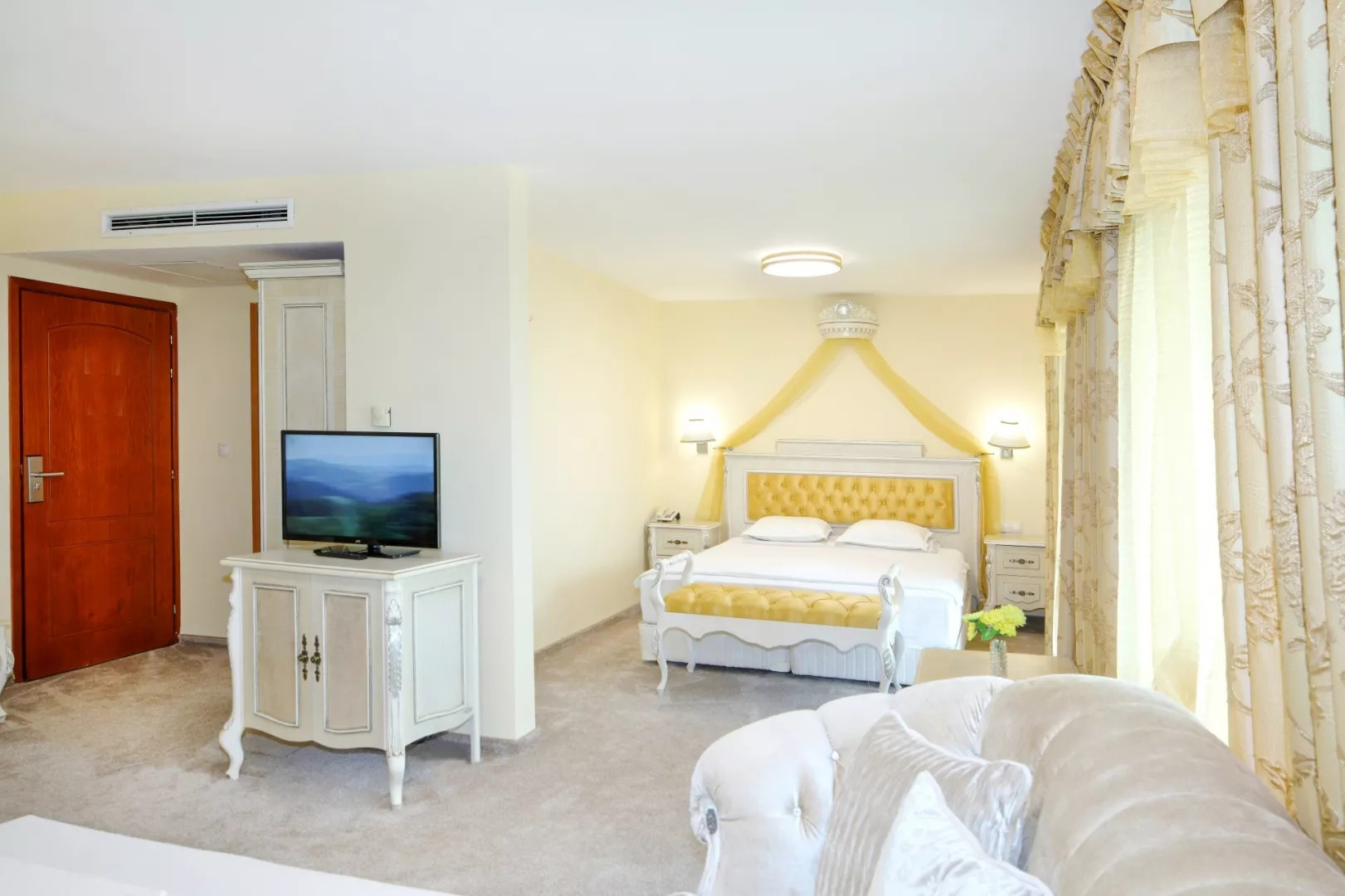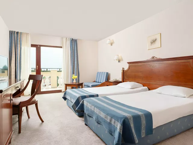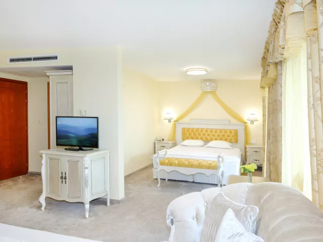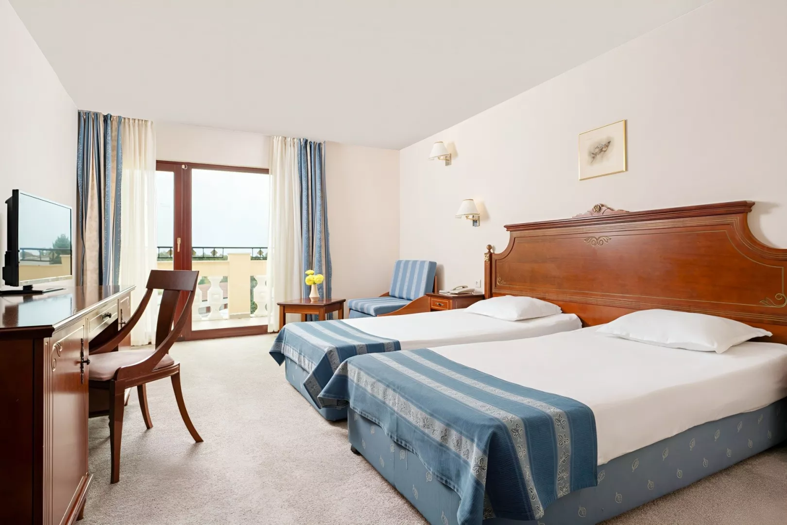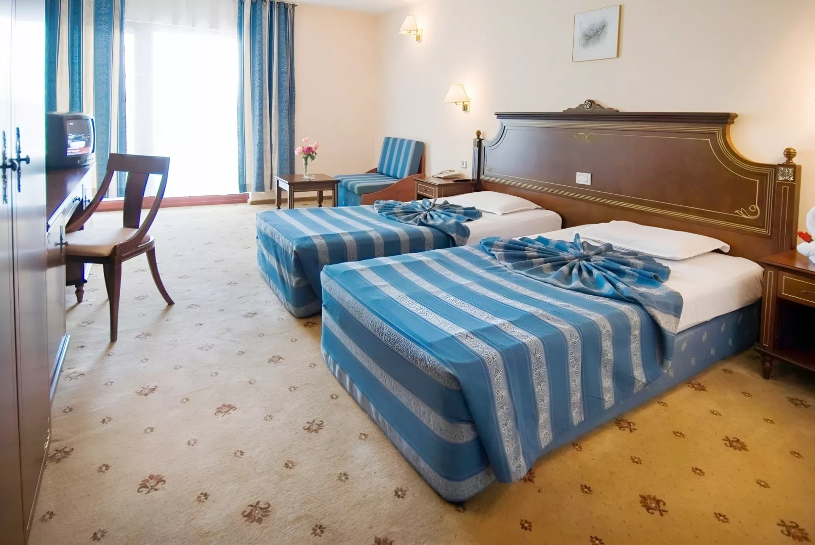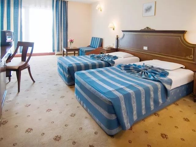 Dvojlôžková izba : kúpeľňa/WC (sušič vlasov), klimatizácia, telefón, TV/sat., trezor za poplatok, minibar za poplatok, balkón alebo terasa. Ostatné typy izieb (pokiaľ nie je uvedené inak, majú izby vyššie uvedené vybavenie) Junior Suita, Výhľad park: priestrannejší Junior Suita, Strana k moru: priestrannejšia, strana k moru