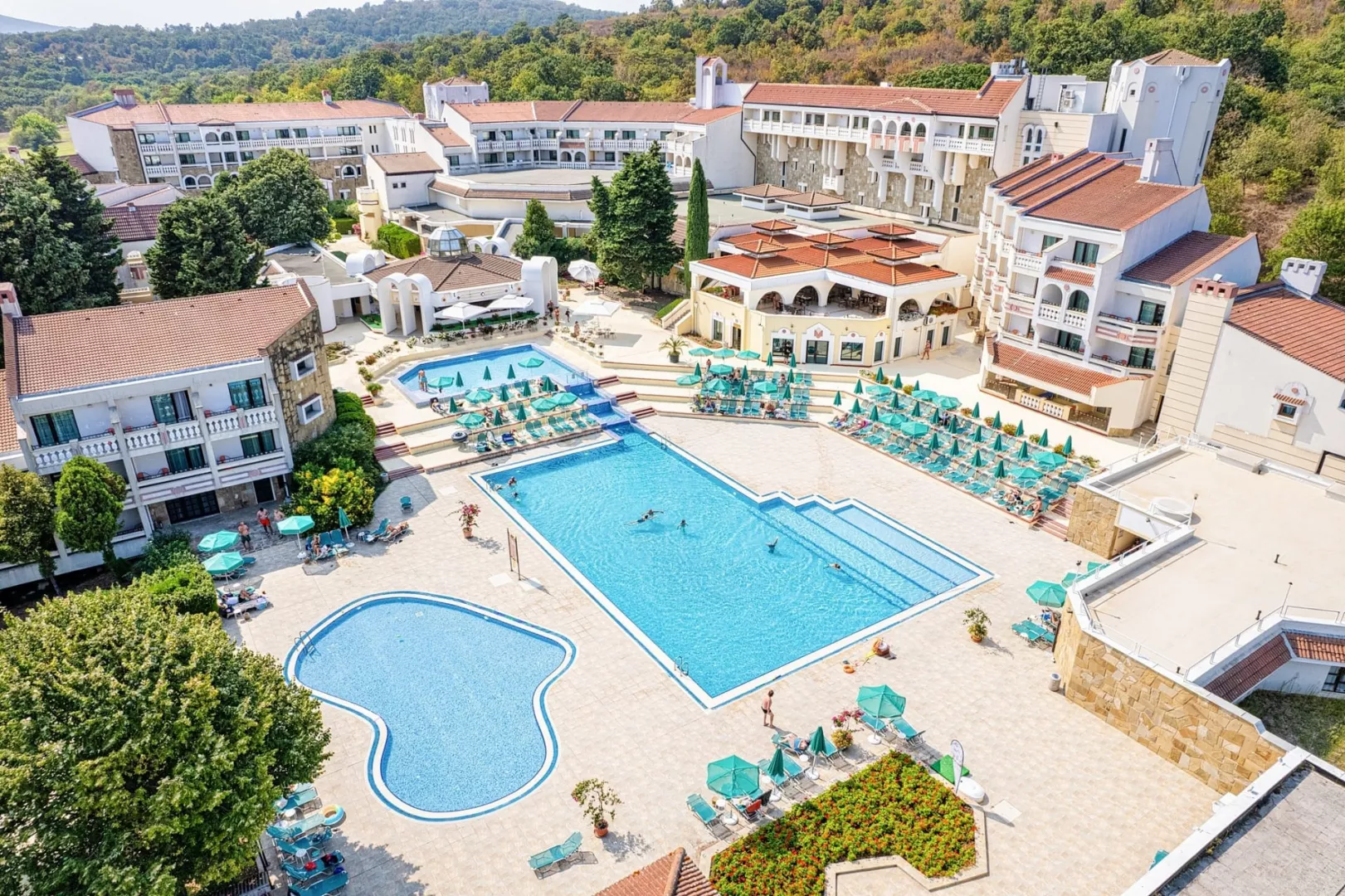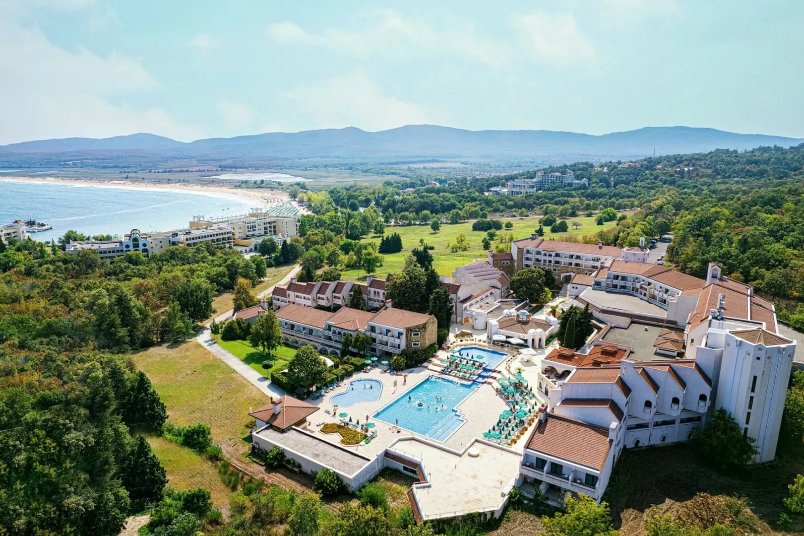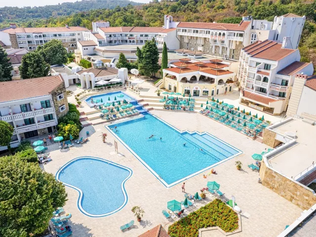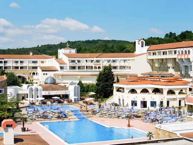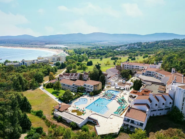 Komplex Duni je jedným z najmodernejších letovísk v celom Bulharsku. Rozkladá sa v miernom svahu pri krásnej širokej zátoke, v blízkosti prírodnej rezervácie Ropotamo, v prostredí plnom zelene. Areál sa skladá z piatich moderne vybavených luxusných hotelov ponúkajúcich služby na vysokej úrovni. Hotely, tvoriace celý komplex - Marina Royal Palace, Pelikan Hotel, Marina Beach, Holiday Village a Belleville. Výhodou komplexu je, že hostia môžu služby All Inclusive čerpať aj v ostatných hoteloch Djuni Royal Resortu. Od mesta Sozopolu je komplex vzdialený cca 6 km, od letoviska Primorsko cca 15 km. Hotel leží v krásnej rozľahlej záhrade, od krásnej piesočnatej pláže s pozvoľným vstupom do mora je vzdialený cca 300 metrov a medzinárodné letisko Burgas cca 50 km. Letisko Varna 160 km.