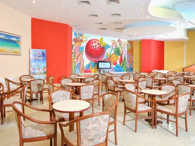 238 izieb, 8 poschodí, vstupná hala s recepciou, výťahy, 7 reštaurácií, z toho niekoľko à la carte, 10 barov, amfiteáter. V záhrade 5 bazénov, aquapark, terasa s lehátkami a slnečníkmi zadarmo. Je možné využívať služby ostatných hotelov v rámci rezortu.