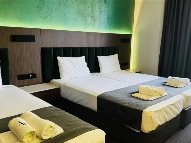 Dvojlôžková izba Deluxe je vybavená individuálnou klimatizáciou, TV, bezplatným Wi-Fi, minichladničkou, telefónom, kúpeľňou/WC (so sušičom vlasov) a balkónom. Ďalšie typy izieb zahŕňajú štúdiá a apartmány s kuchynkou, vhodné pre rodiny.