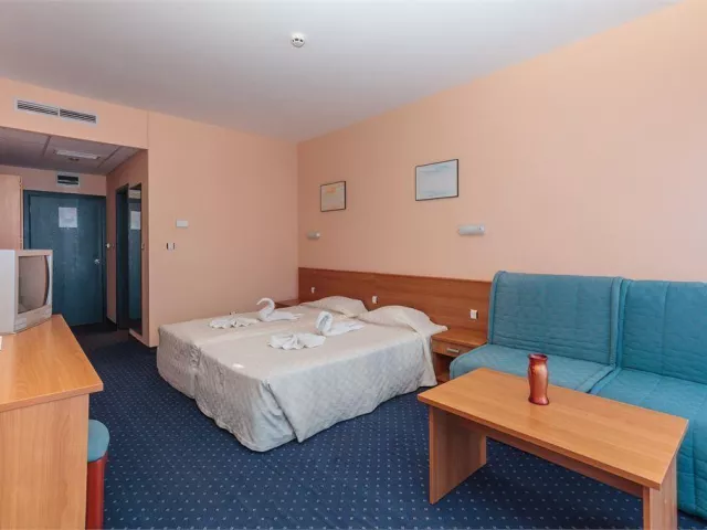 Hotel ponúka 105 izieb, ktoré sú vybavené sprchou alebo vaňou, fénom, klimatizáciou, satelitnou TV, telefónom, Wi-Fi (platenej), chladničkou a balkónom. Izby Eco, Promo a Club môžu mať nevýhodnú polohu, menšiu veľkosť alebo nemusia mať balkón.