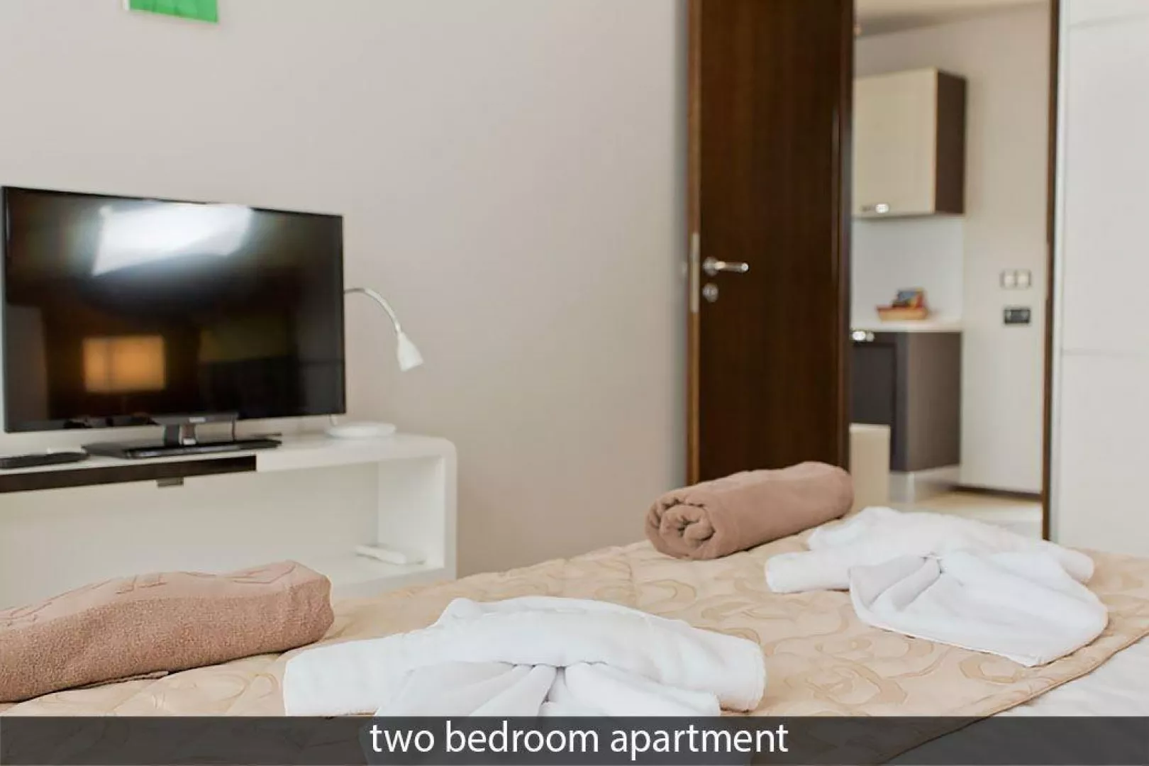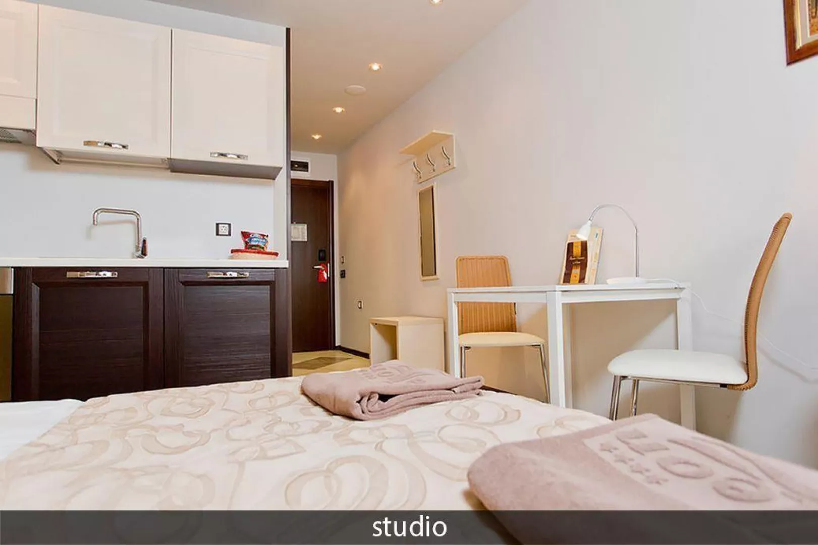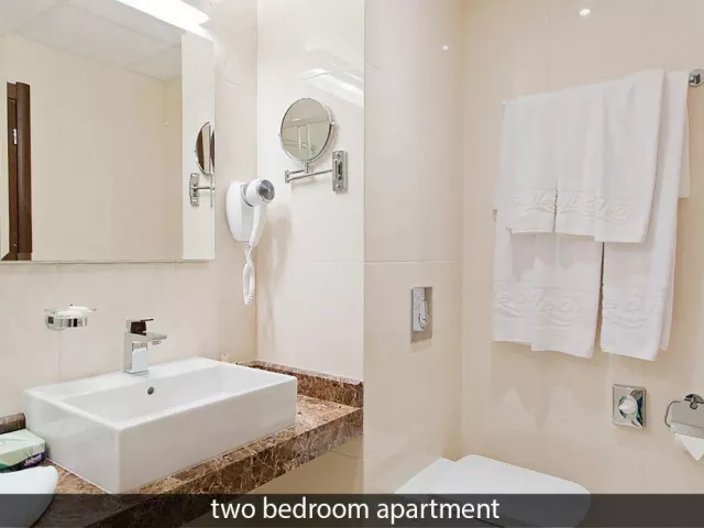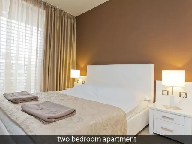 Hotel má 164 izieb, ktoré sú vybavené balkónom, klimatizáciou, TV, trezorom, telefónom, minibarom (za poplatok), kuchynským kútom, kúpeľňou s WC, fénom, županom (zadarmo) a Wi-Fi. Eco, Promo a Club izby sú znevýhodnené polohou, veľkosťou alebo nemusia mať balkón.