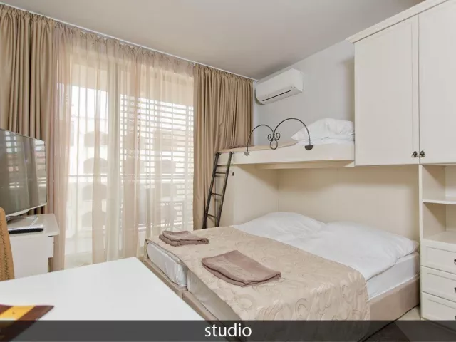Verejná piesočnatá pláž je vzdialená 200 m. Slnečníky, ležadlá a plážové osušky nie sú k dispozícii.