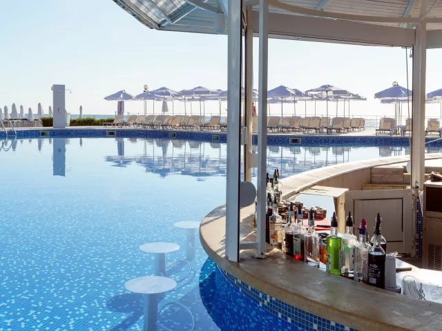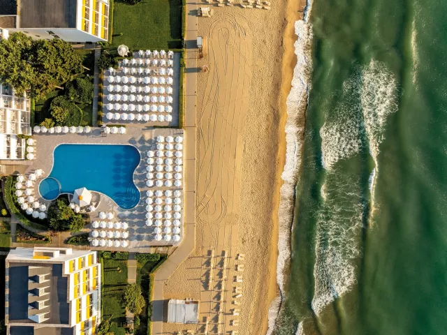 Príjemná piesočnatá pláž sa nachádza priamo pri hoteli. Ležadlá, slnečníky a osušky sú dostupné za poplatok.