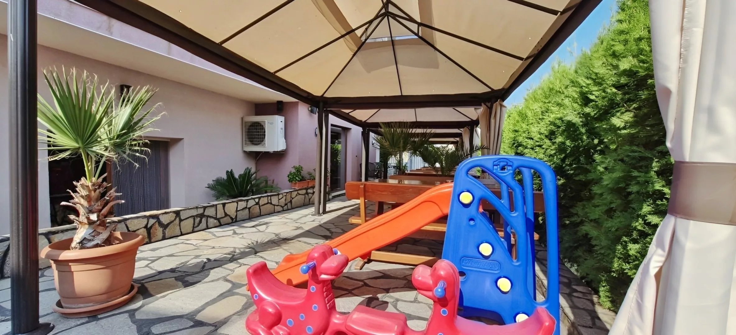 Menší rodinný hotel sa nachádza v pokojnej časti letoviska Obzor, len 300 m od centra a 500 m od nádhernej piesočnatej pláže s pozvoľným vstupom do mora. Medzinárodné letisko v Burgase je vzdialené 66 km a miestna hromadná doprava zabezpečuje jednoduchý prístup do okolitých turistických letovísk.