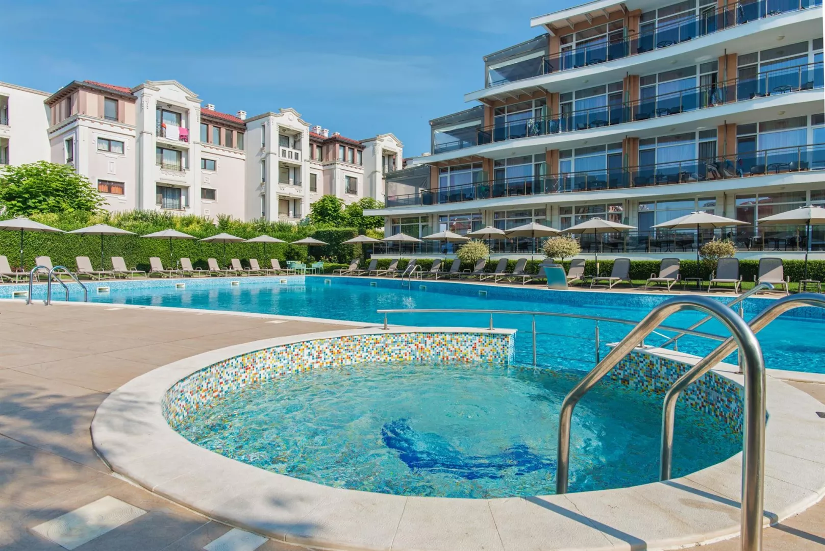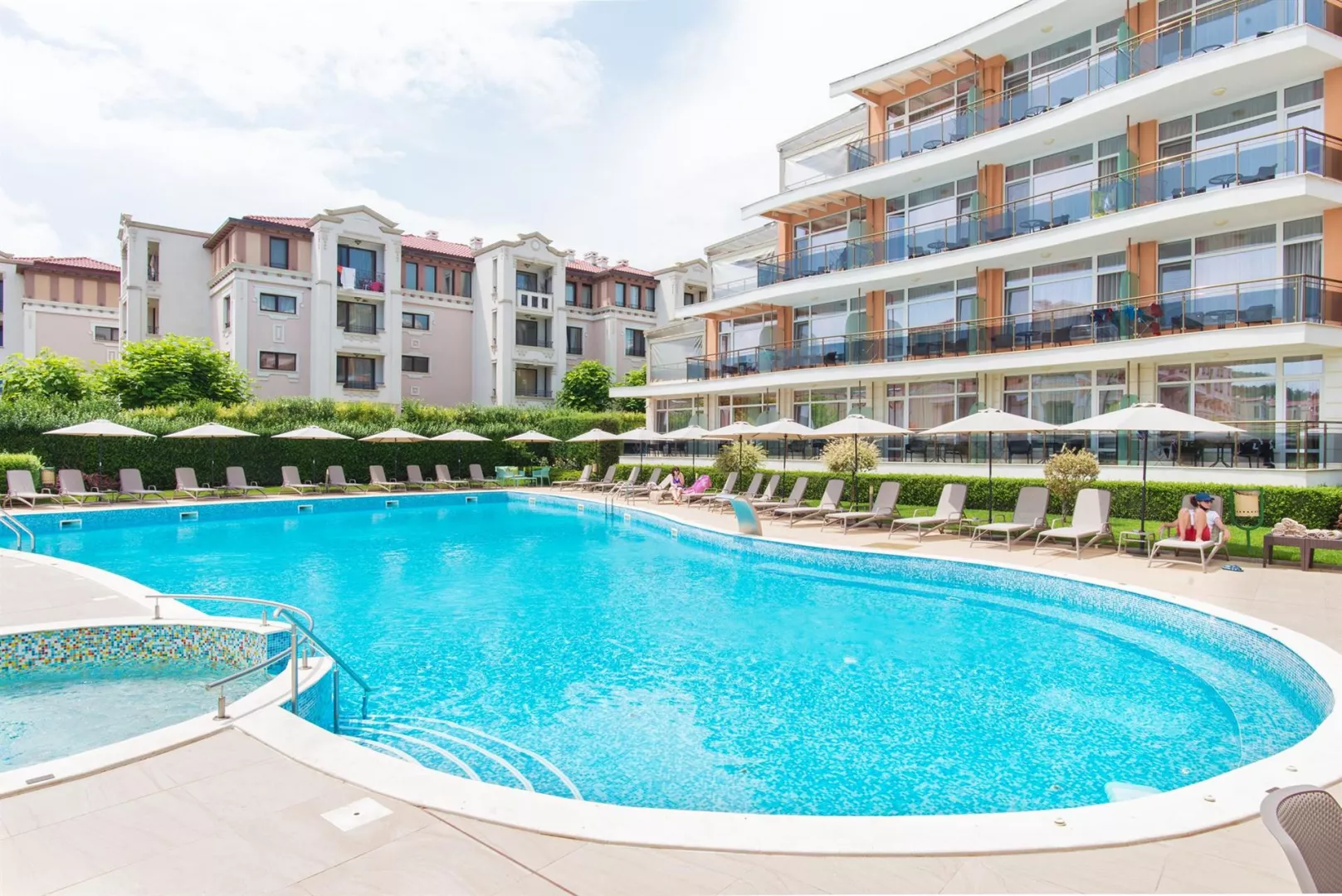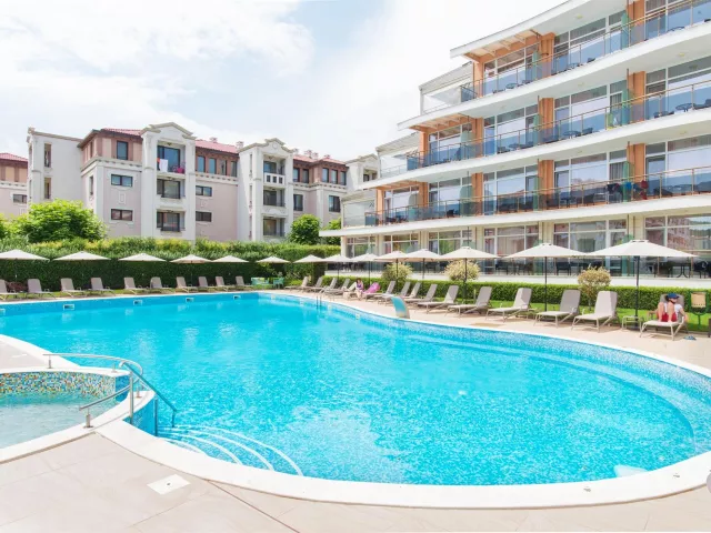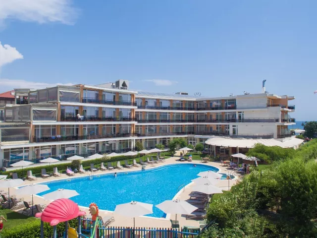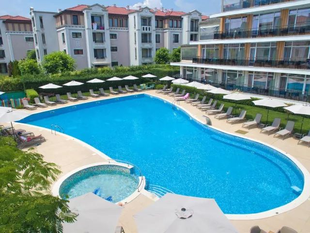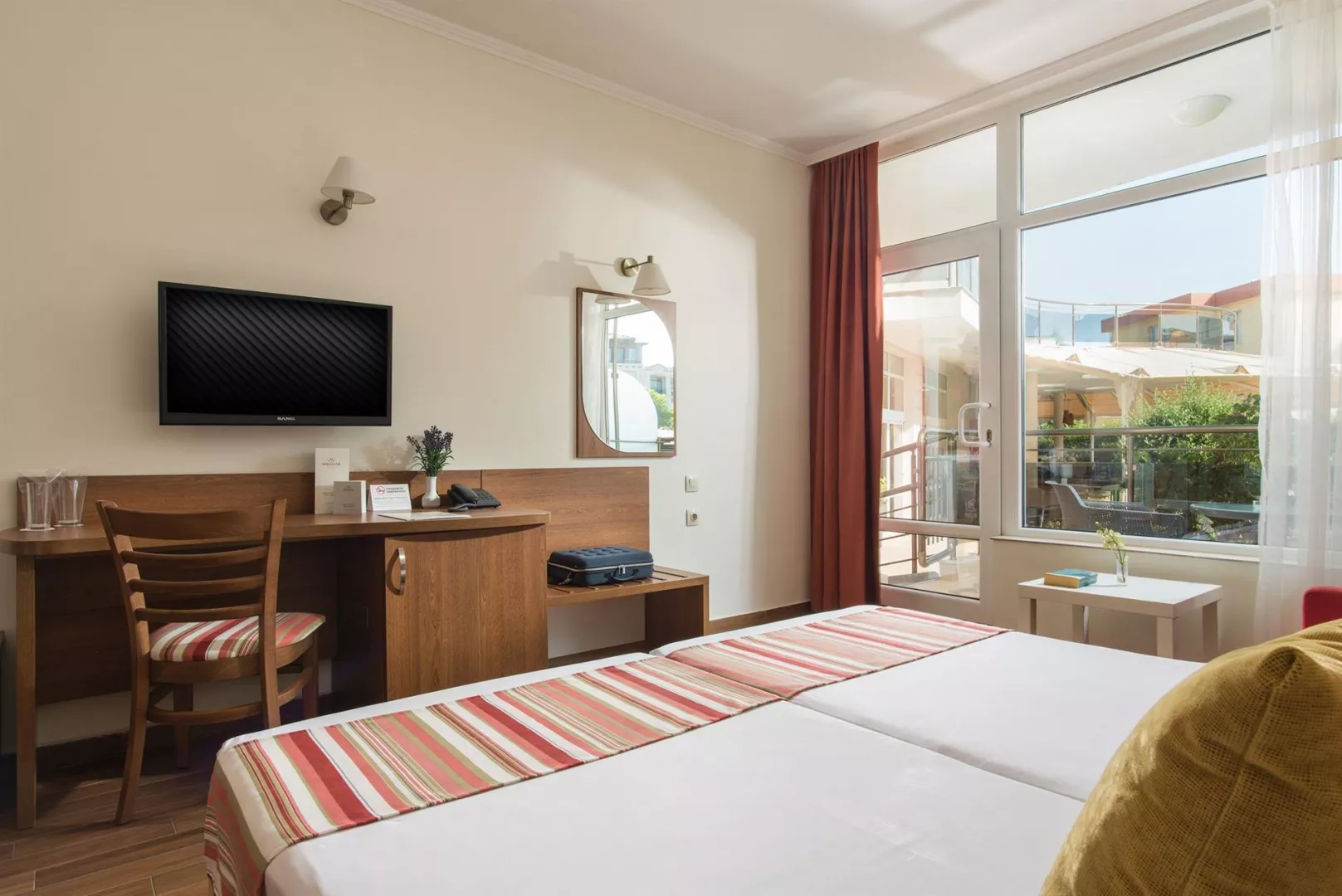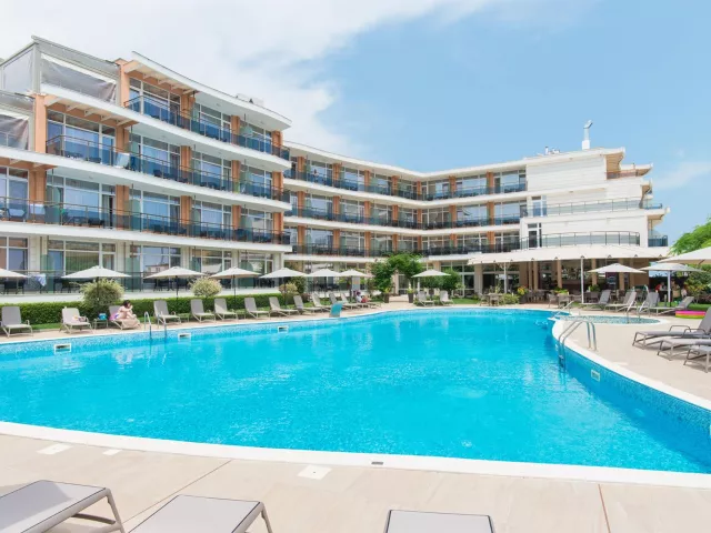 štvorposchodová budova, ktorá pozostáva z 84 dvojlôžkových izieb, 1 izby pre osoby so zdravotným postihnutím, 4 junior suít a 9 apartmánov s jednou spálňou / suít, s celkovou kapacitou 198 lôžok. bazén detský bazén reštaurácia s letnou záhradou lobby bar bar pri bazéne úschovňa batožiny detský klub vonkajšie detské ihrisko dva výťahy