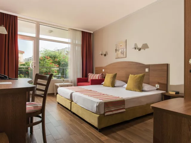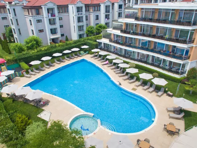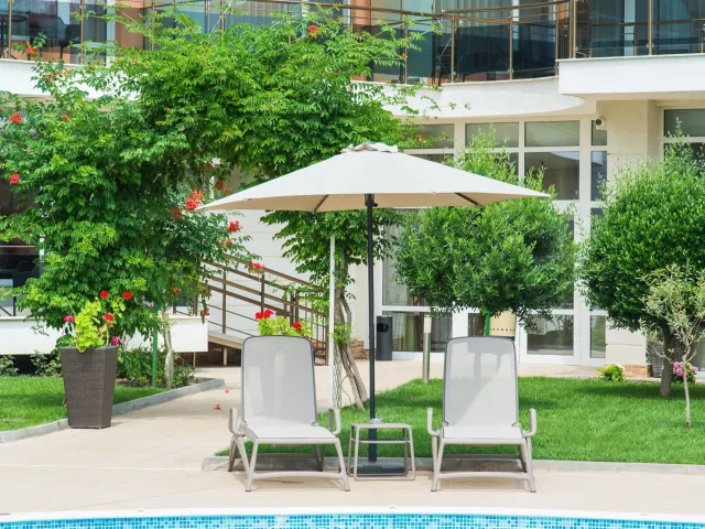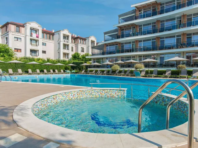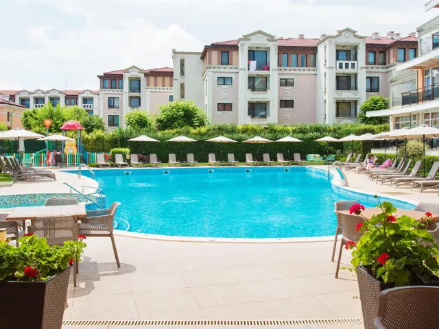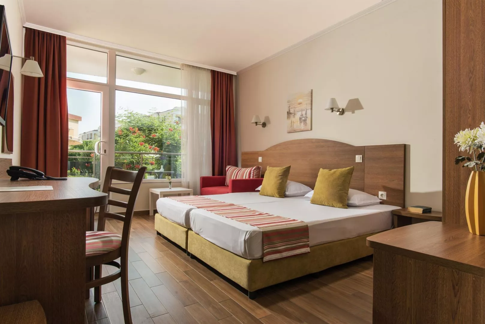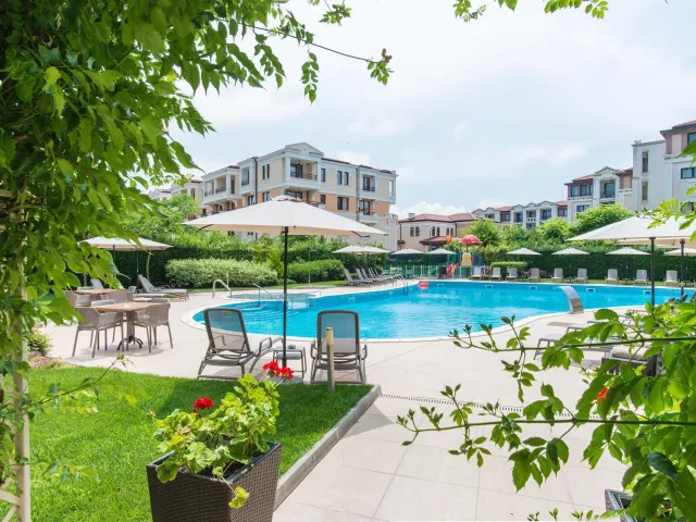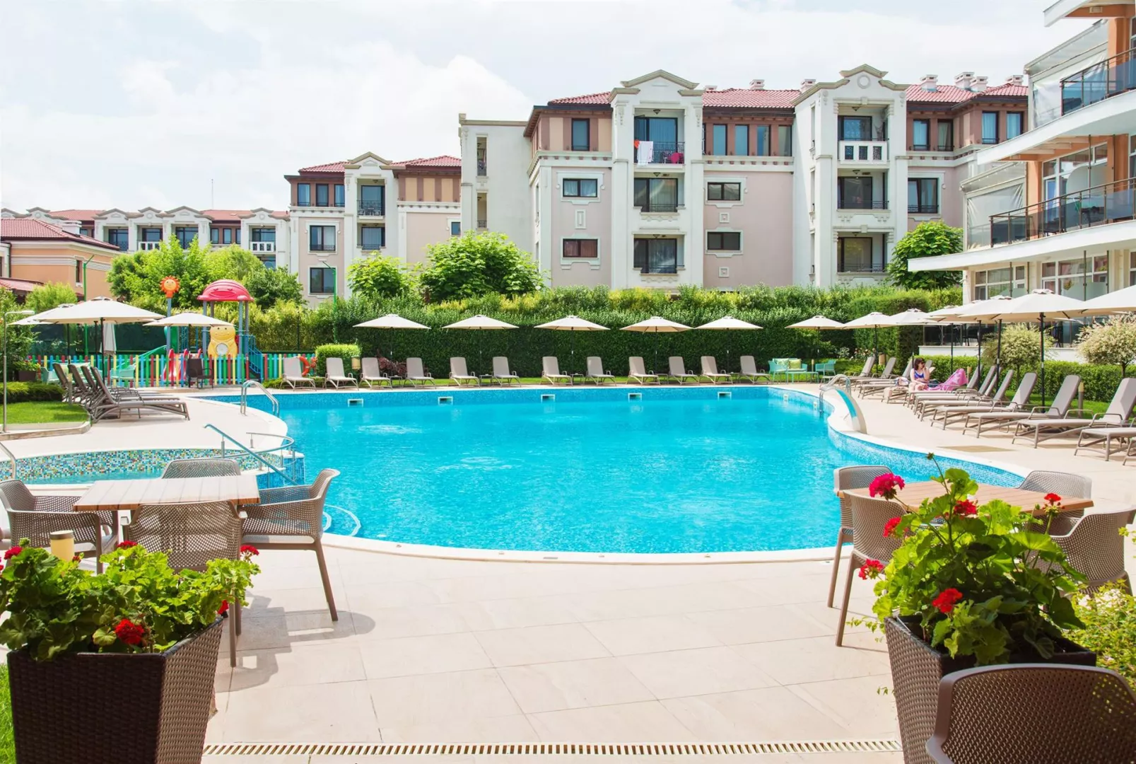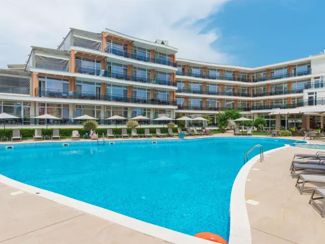 štvorposchodová budova, ktorá pozostáva z 84 dvojlôžkových izieb, 1 izby pre osoby so zdravotným postihnutím, 4 junior suít a 9 apartmánov s jednou spálňou / suít, s celkovou kapacitou 198 lôžok. bazén detský bazén reštaurácia s letnou záhradou lobby bar bar pri bazéne úschovňa batožiny detský klub vonkajšie detské ihrisko dva výťahy