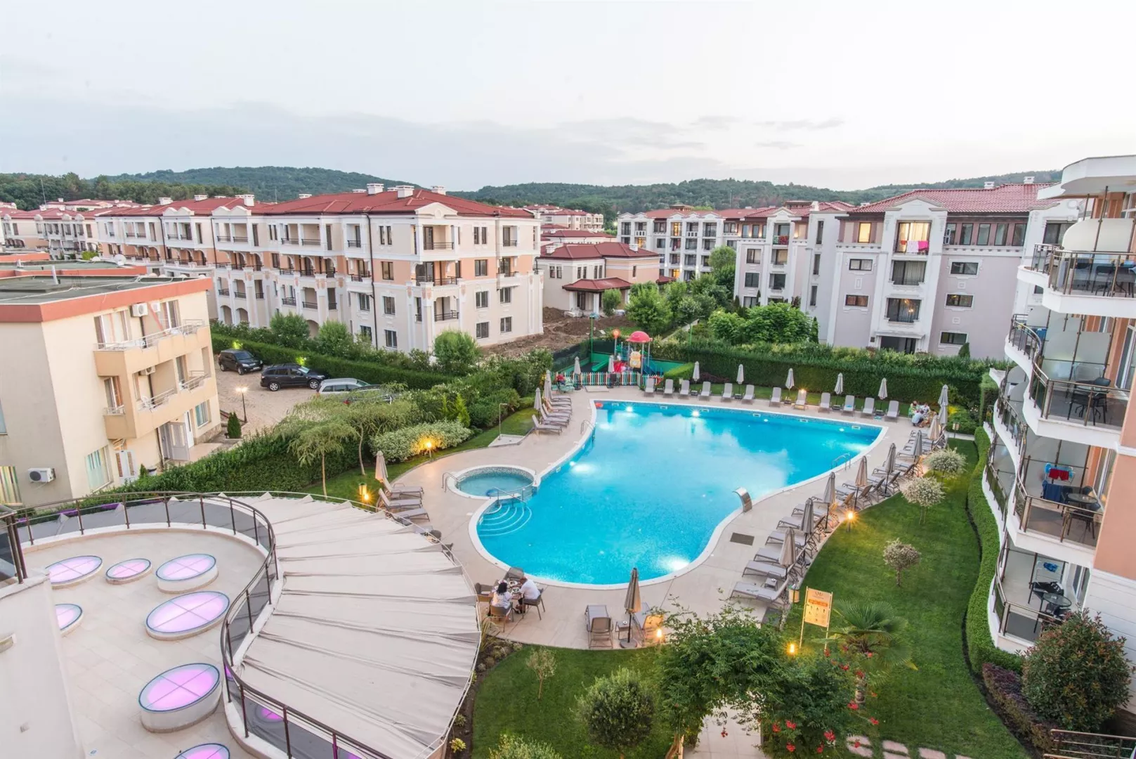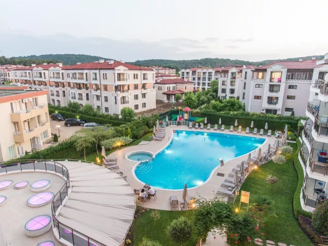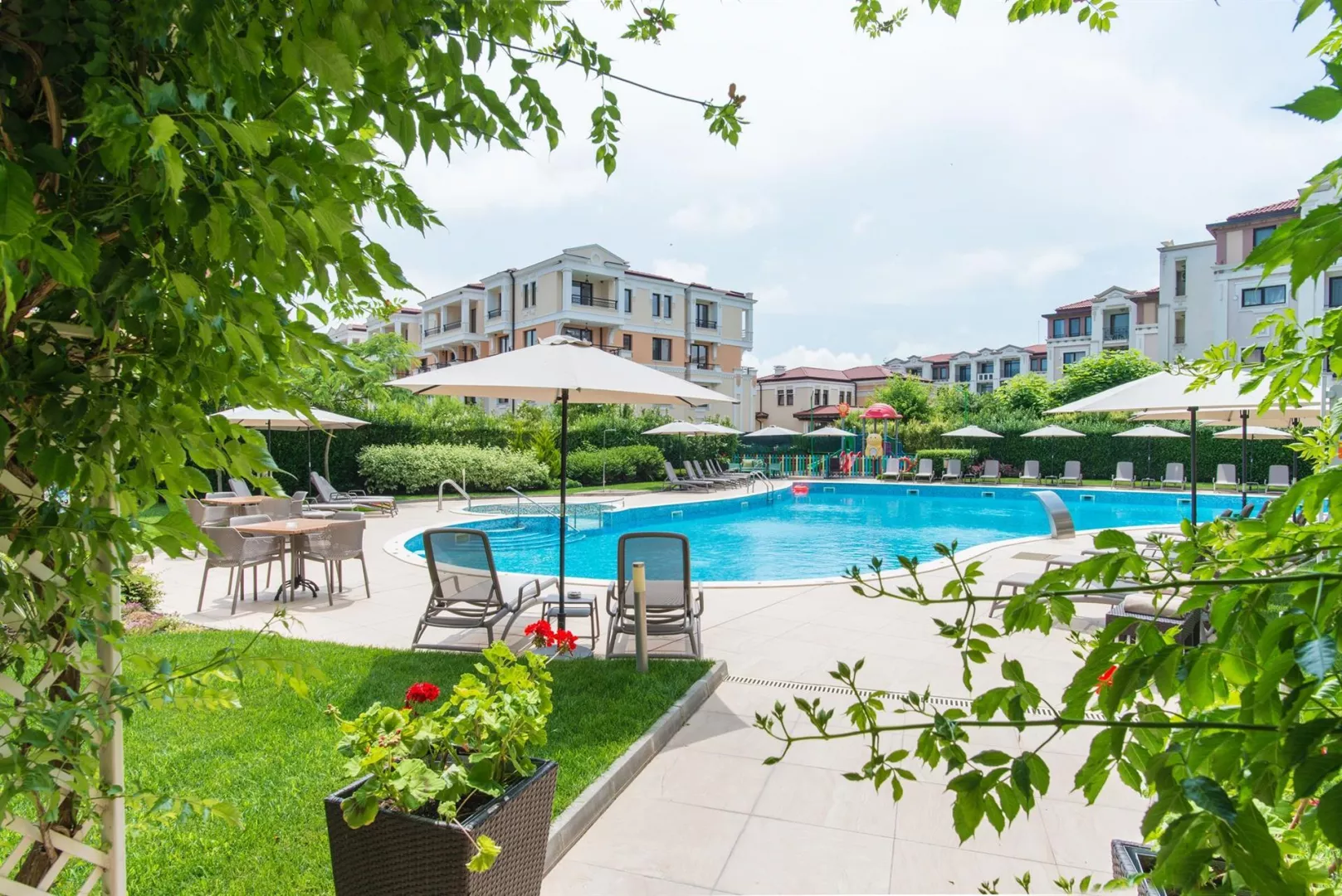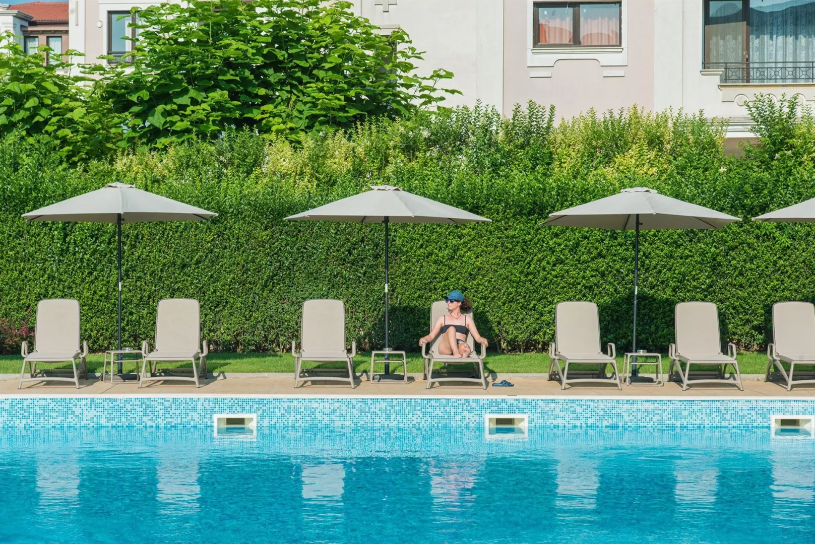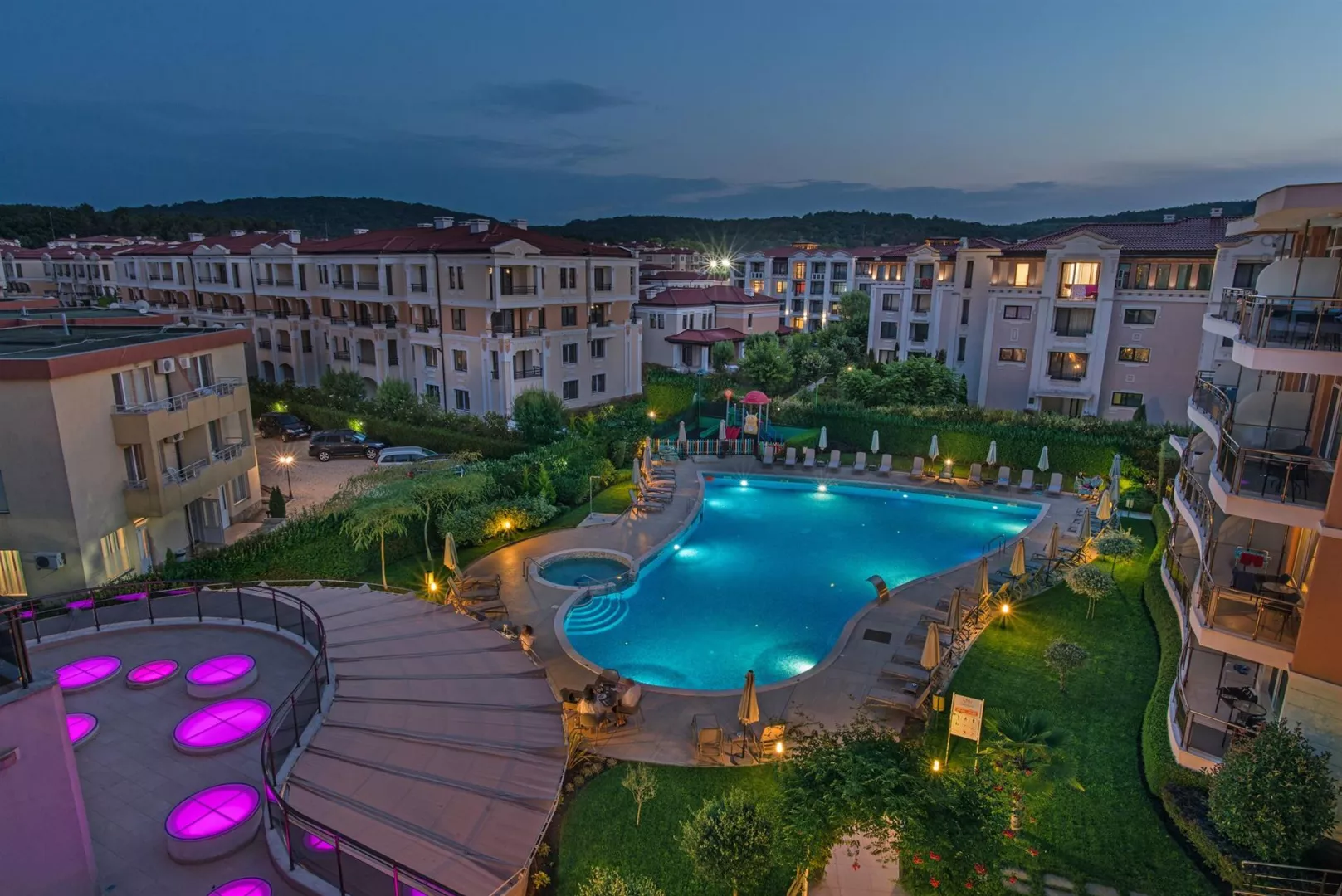 štvorposchodová budova, ktorá pozostáva z 84 dvojlôžkových izieb, 1 izby pre osoby so zdravotným postihnutím, 4 junior suít a 9 apartmánov s jednou spálňou / suít, s celkovou kapacitou 198 lôžok. bazén detský bazén reštaurácia s letnou záhradou lobby bar bar pri bazéne úschovňa batožiny detský klub vonkajšie detské ihrisko dva výťahy