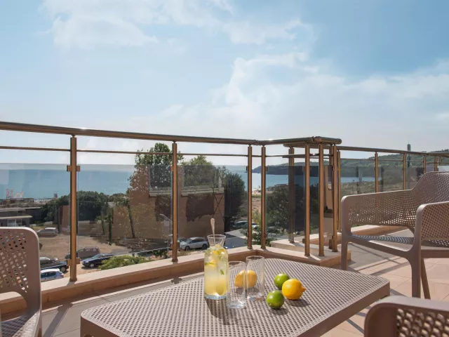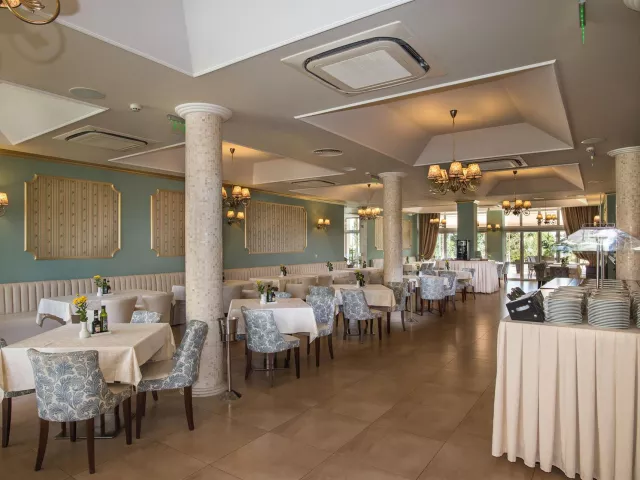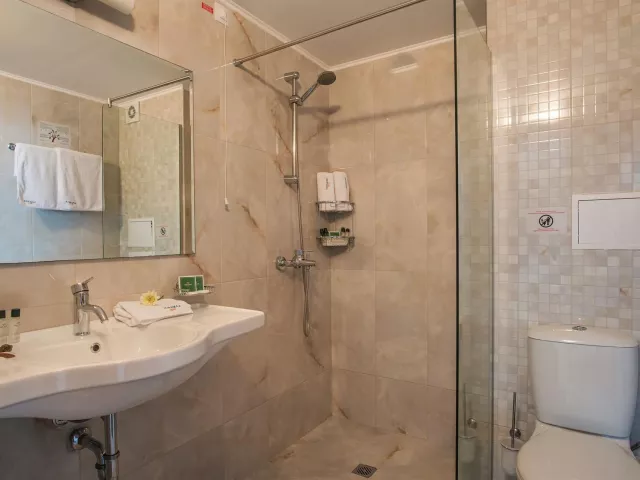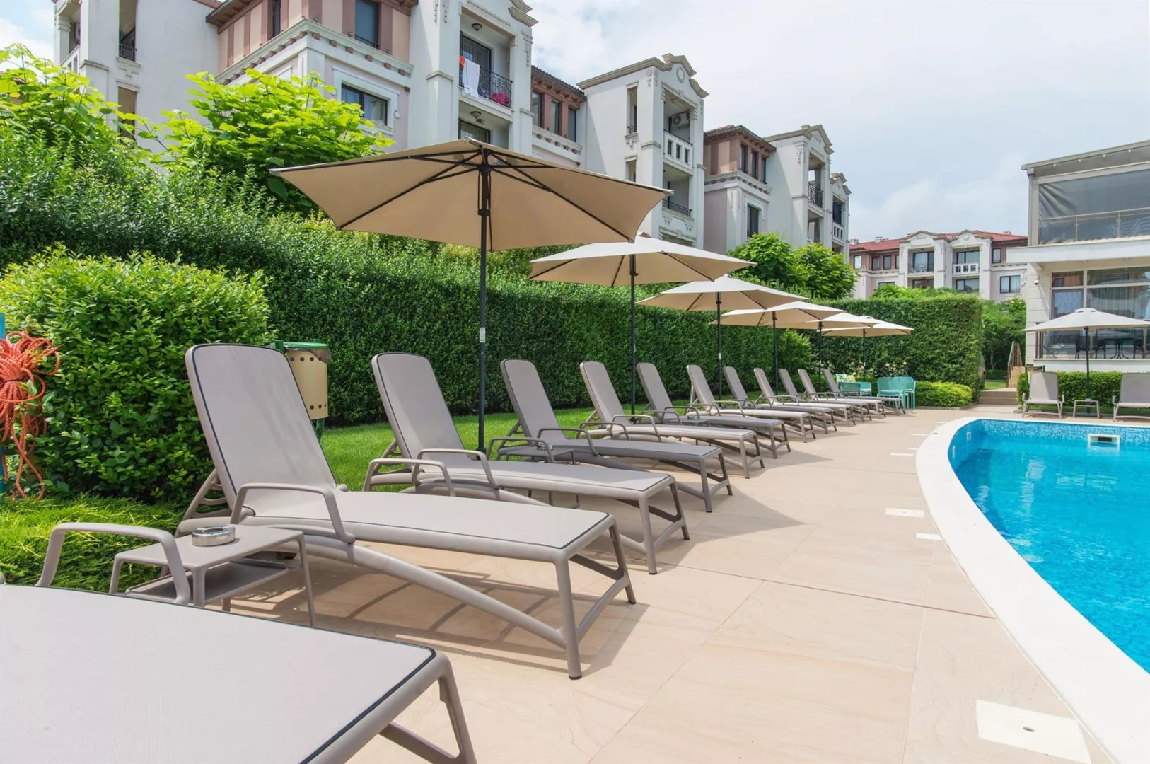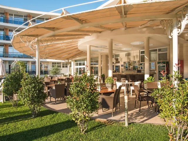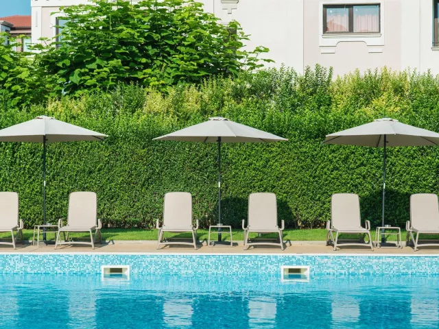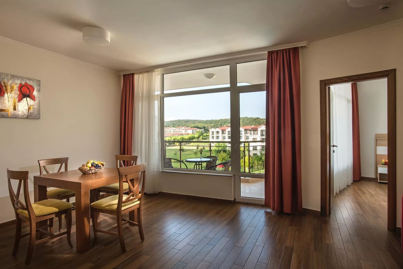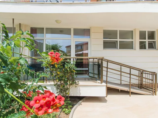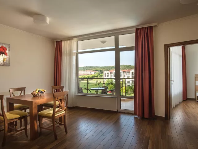 štvorposchodová budova, ktorá pozostáva z 84 dvojlôžkových izieb, 1 izby pre osoby so zdravotným postihnutím, 4 junior suít a 9 apartmánov s jednou spálňou / suít, s celkovou kapacitou 198 lôžok. bazén detský bazén reštaurácia s letnou záhradou lobby bar bar pri bazéne úschovňa batožiny detský klub vonkajšie detské ihrisko dva výťahy