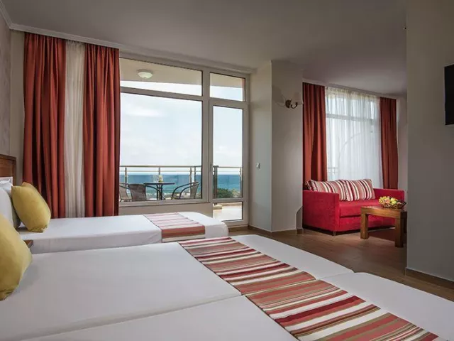 DVOJLÔŽKOVÁ IZBA dve samostatné postele (2/1 m) matrace Magniflex rozkladacie kreslo TV LCD 32" a káblová televízia minibar telefón kúpeľňa so sprchovacím kútom sušič vlasov kozmetické zrkadlo núdzové tlačidlo v kúpeľni centrálna klimatizácia balkón APARTMÁN S JEDNOU SPÁLŇOU V spálni dve samostatné postele (2/1 m) matrace Magniflex šatníková skriňa TV LCD 32" / káblová TV centrálna klimatizácia telefón V obývacej izbe pohovka kreslo šatníková skriňa TV LCD 32" / káblová TV minibar kuchynský kút balkón V kúpeľni sprcha núdzové tlačidlo sušič vlasov kozmetické zrkadlo JUNIOR SUITE tri samostatné postele (2/1 m) matrace Magniflex šatníková skriňa 2x TV LCD 32" / káblová TV centrálna klimatizácia telefón V kúpeľni sprcha núdzové tlačidlo sušič vlasov kozmetické zrkadlo