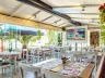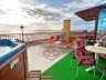 Piesočnatá pláž ponúka lehátka a slnečníky za poplatok.