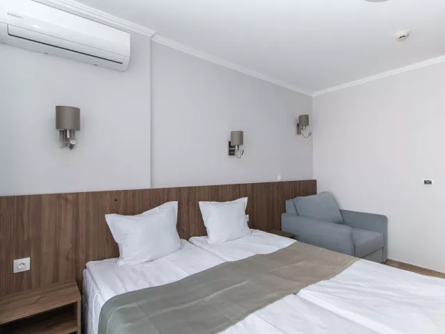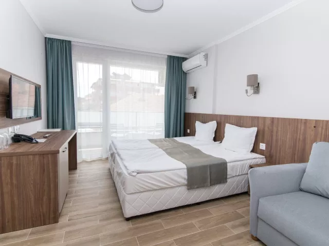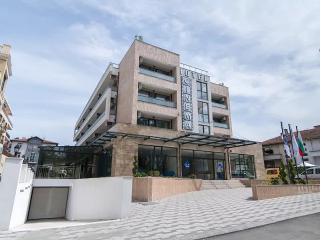 Hotel Cinema sa nachádza len pár krokov od južnej pláže Primorska, približne 200 m od piesočnatej pláže. Centrum Primorska je vzdialené asi 500 m, zatiaľ čo severná pláž je dostupná pešo do 20 minút. Letisko v Burgase sa nachádza 60 km od hotela.