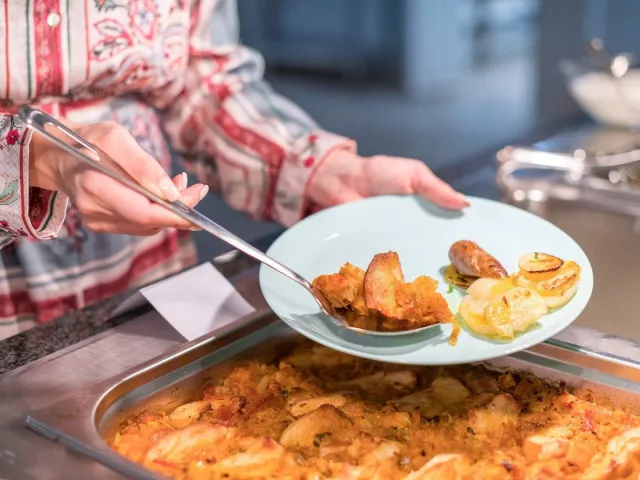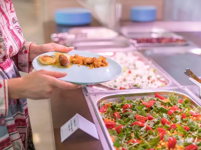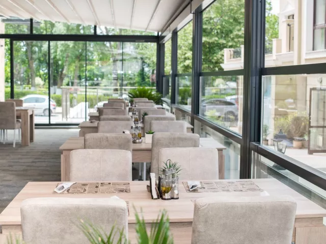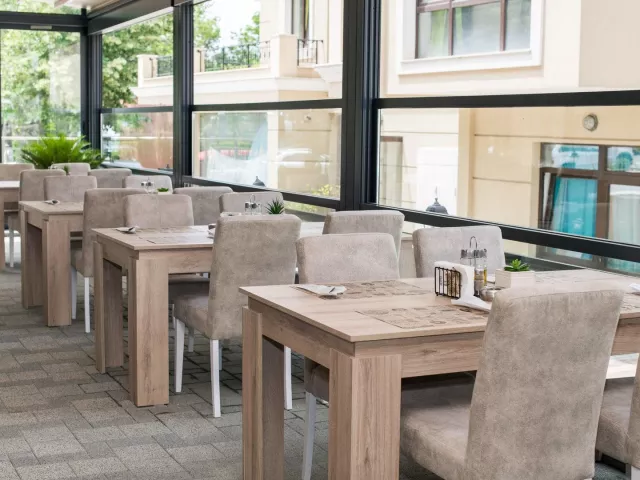 V hoteli sa ponúka stravovanie v rôznych formách, vrátane raňajok, polpenzie a ALL INCLUSIVE. Raňajky a večere sú podávané formou bufetového stolu, s priestorom na obed a popoludňajšie občerstvenie.