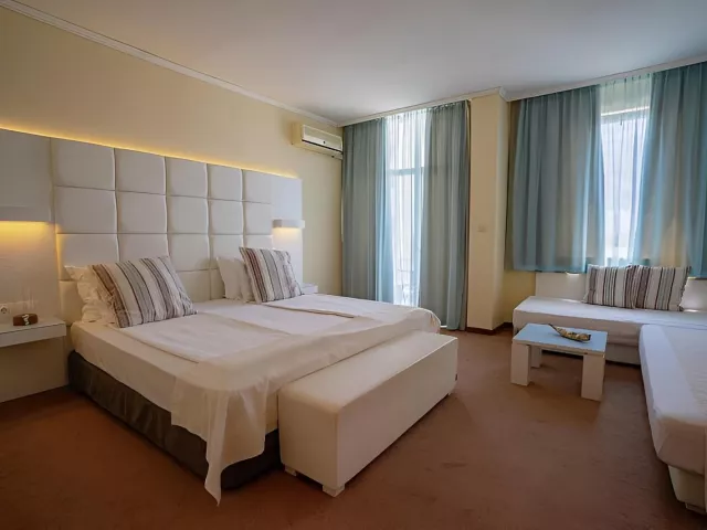 Hotel sa nachádza v Primorsku, len 300 metrov od centra mesta a len 50 metrov od krásnej piesočnatej pláže s pozvoľným vstupom do mora. V blízkosti sú mnohé bary, reštaurácie a obchody, ktoré môžete navštíviť počas celého dňa aj večer. Medzinárodné letisko Burgas je vzdialené 60 km, zastávka autobusu 300 m a lekáreň 50 m.